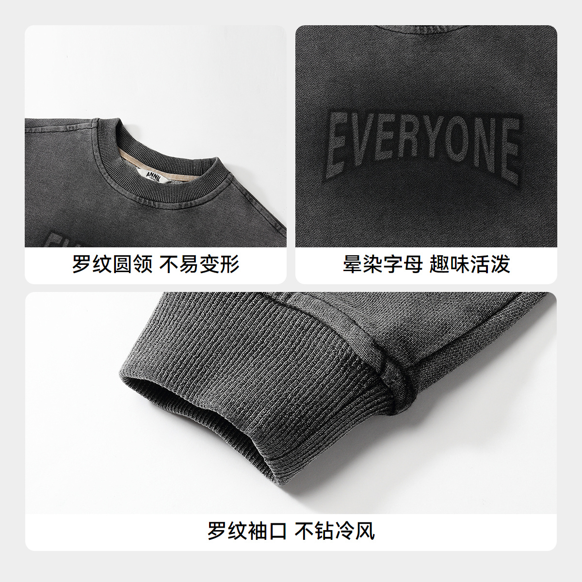 运动休闲学院风牛仔 卫衣2025秋新款 安奈儿童装 男童女童圆领长袖