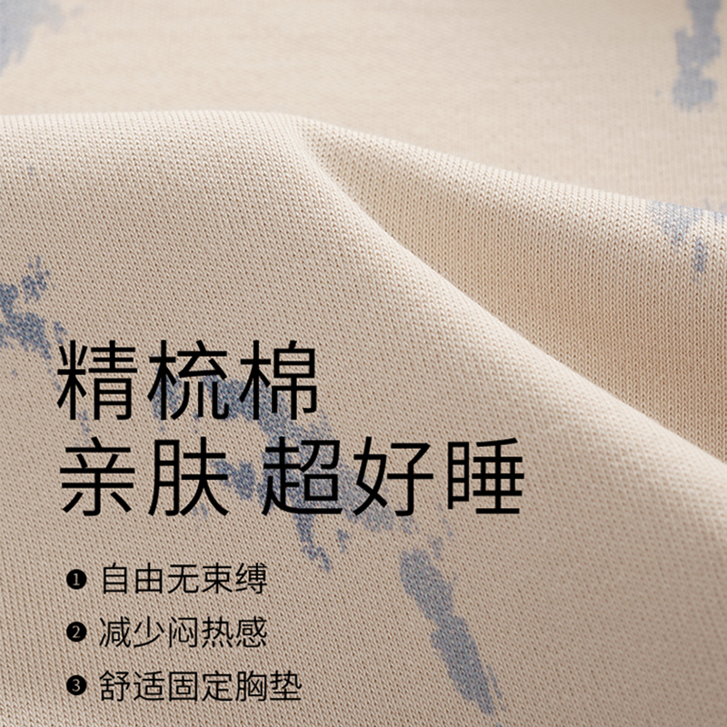 帕兰朵睡衣女精梳棉春秋长袖 自带胸垫薄可外穿舒适休闲家居服套装