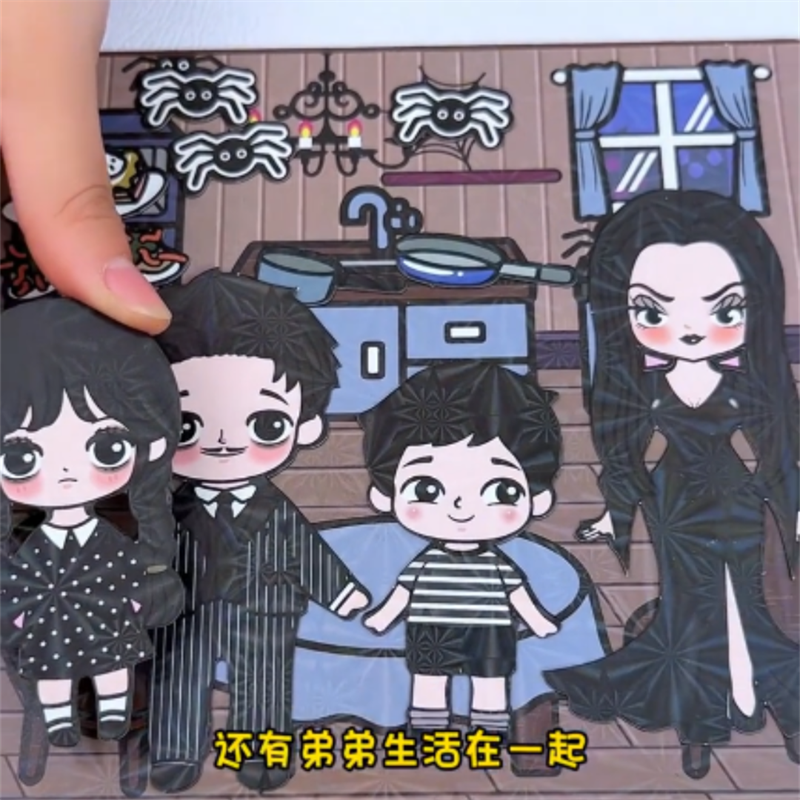 安静书磁贴黑色星期三和小狼女磁力免裁剪2025爆款 玩具女孩安静书