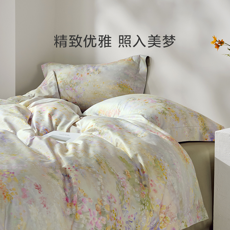 罗莱家纺专柜同款 四件套全棉U易套纯棉贡缎床单被套被罩双人套件