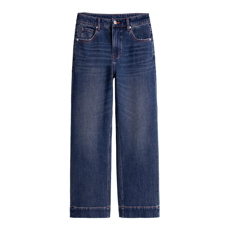 女款 热风阔腿牛仔裤 女士复古百搭显瘦薄绒长裤 新款 2025年春季