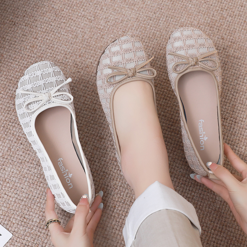 蝴蝶结浅口单鞋 百搭小香风蛋卷软底平底鞋 女 女2025新款 老北京布鞋