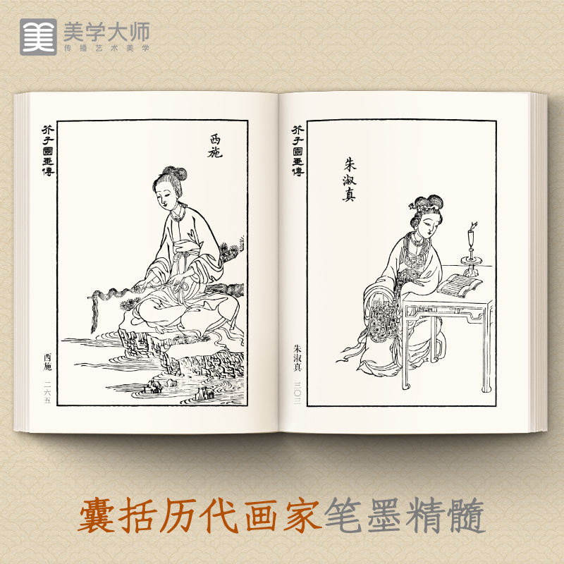 美学大师 介子园工笔国画入门技法草虫翎毛兰竹梅菊山水画谱实用教材书籍 芥子园画传人物谱王概著巢勋临摹增图黑白完整版