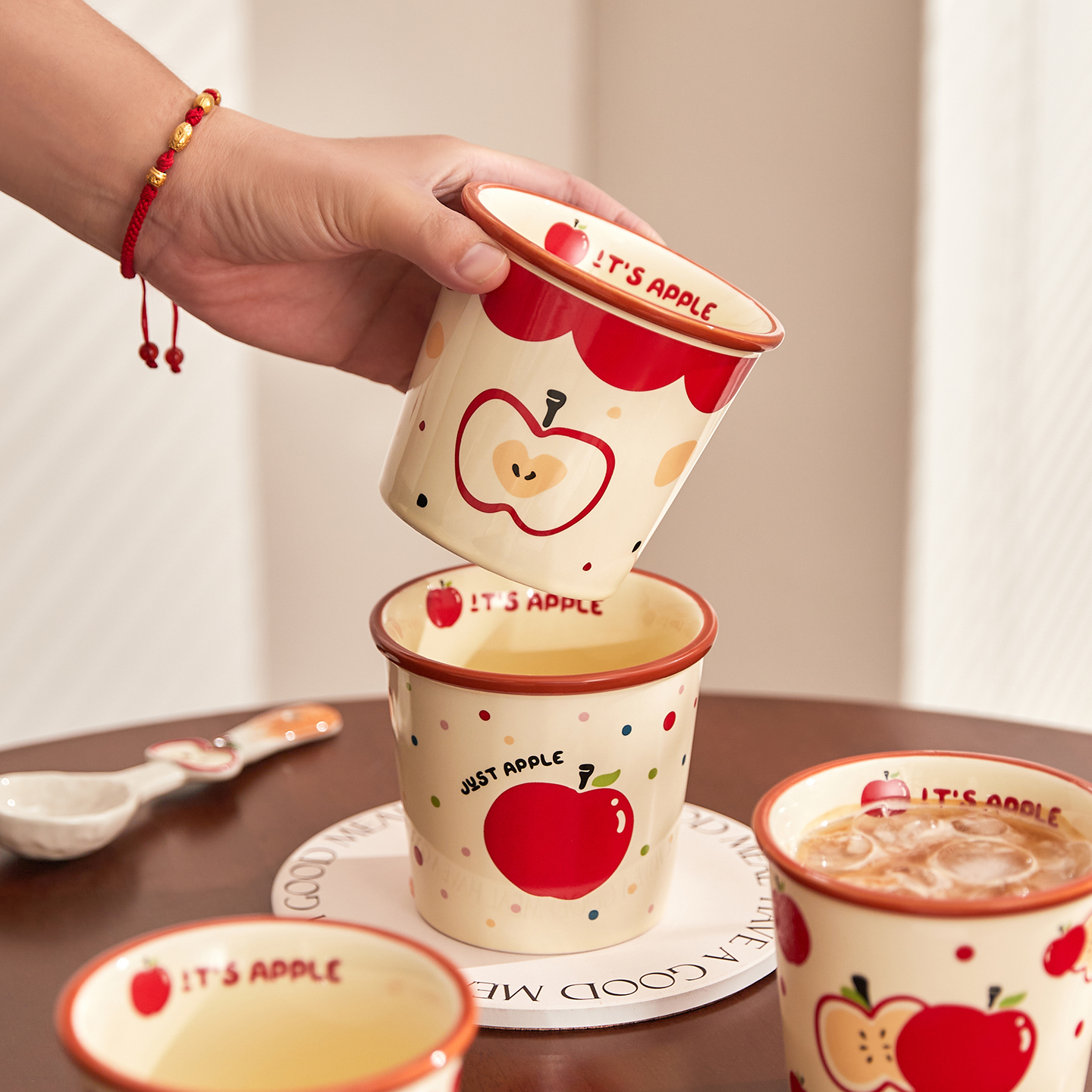 小众红苹果咖啡杯简约陶瓷杯翻口马克杯水杯情侣礼物拉花杯拿铁杯