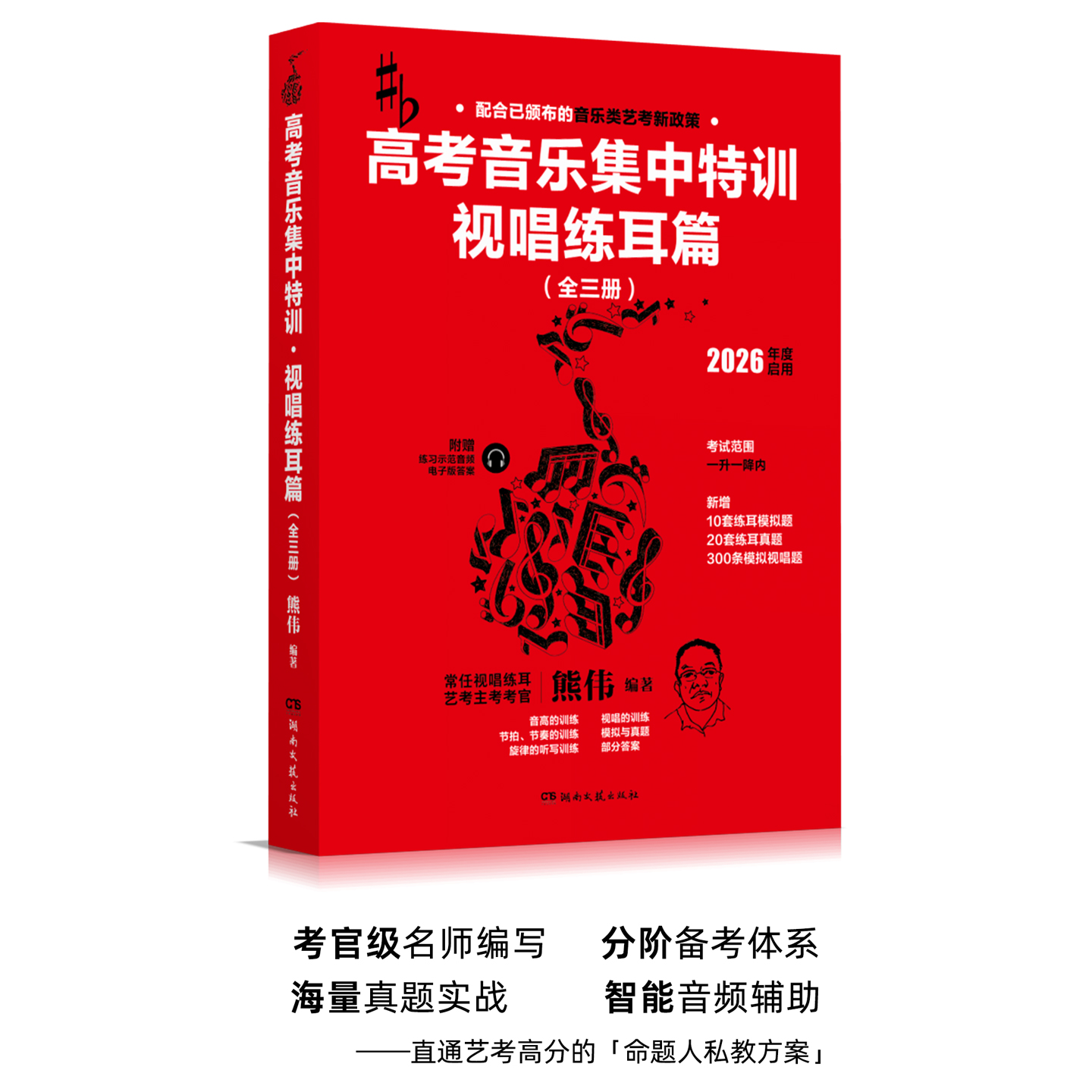 答案模拟与真题音乐艺考模拟试题 配备练习示范音频+电子版 全套3册 熊伟高考音乐集中特训视唱练耳篇2026年度启用一升一降内
