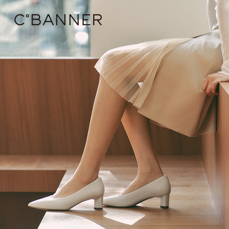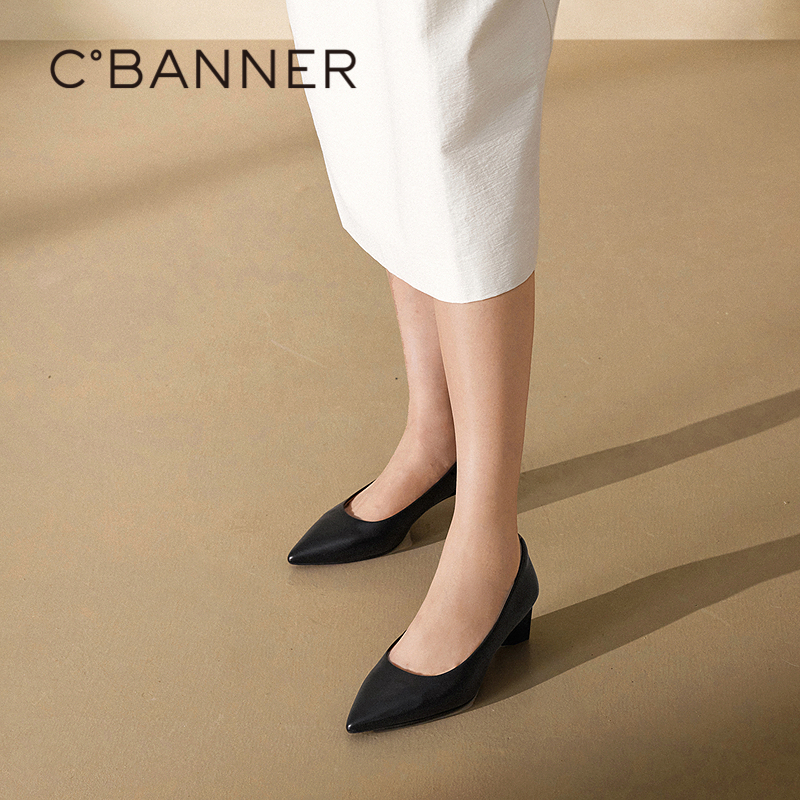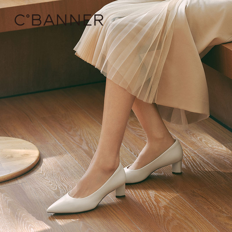 新款 女2025秋季 千百度裸色粗高跟鞋 通勤羊皮浅口单鞋 静音系列