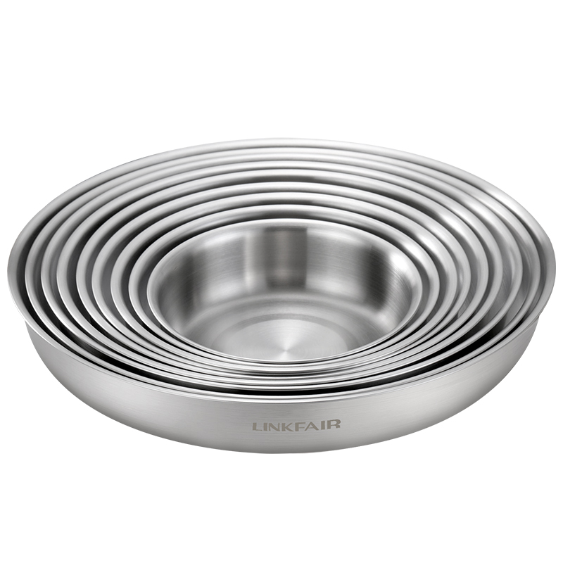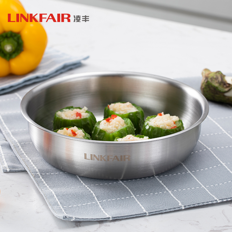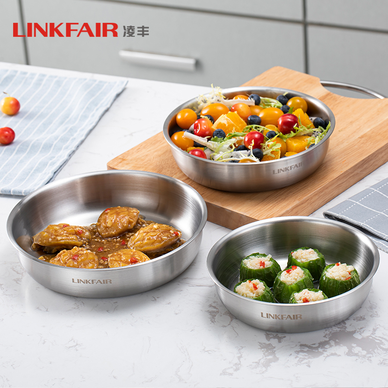 凌丰食品级304不锈钢蒸饭蒸蛋汤盘圆盘蒸鱼盘盆盘子菜盘碟子餐盘