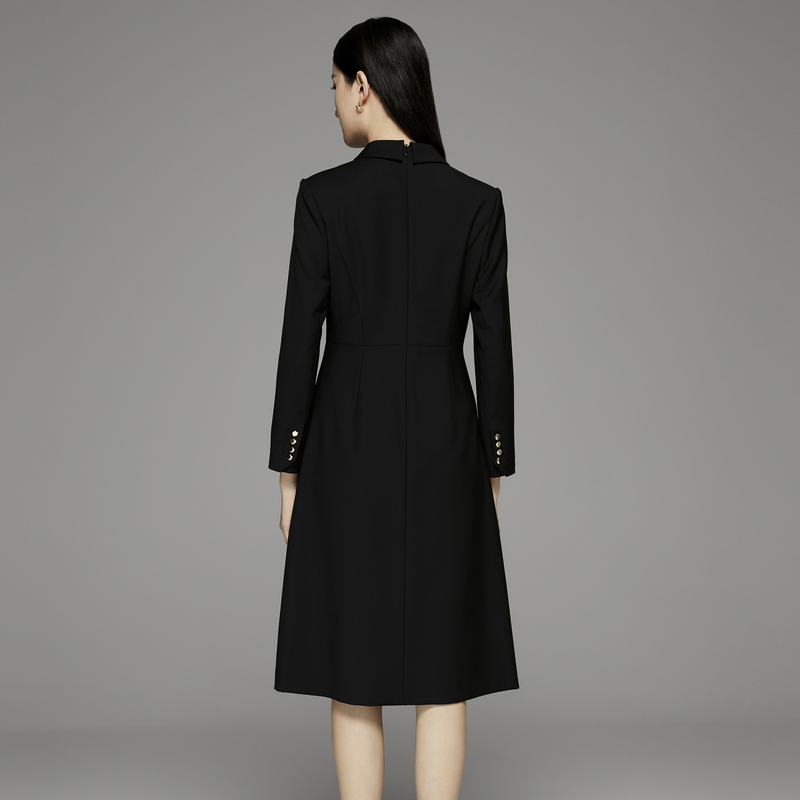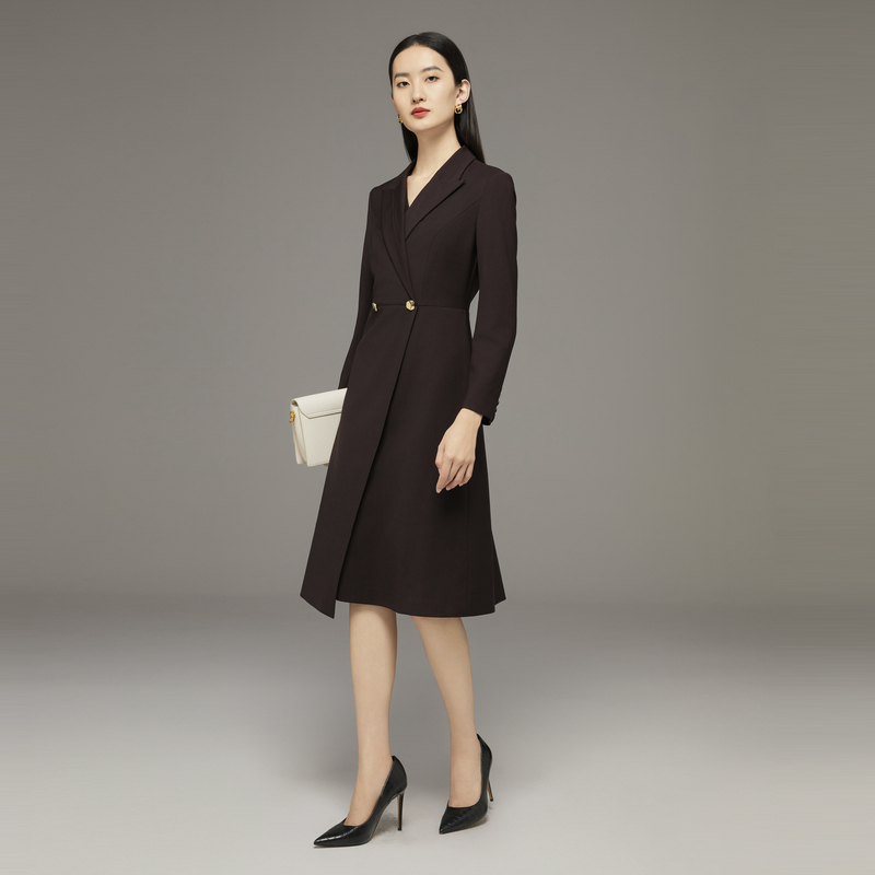 显瘦25秋新款 NAERSI娜尔思时尚 气质绵羊毛V领连衣裙立体廓形修身