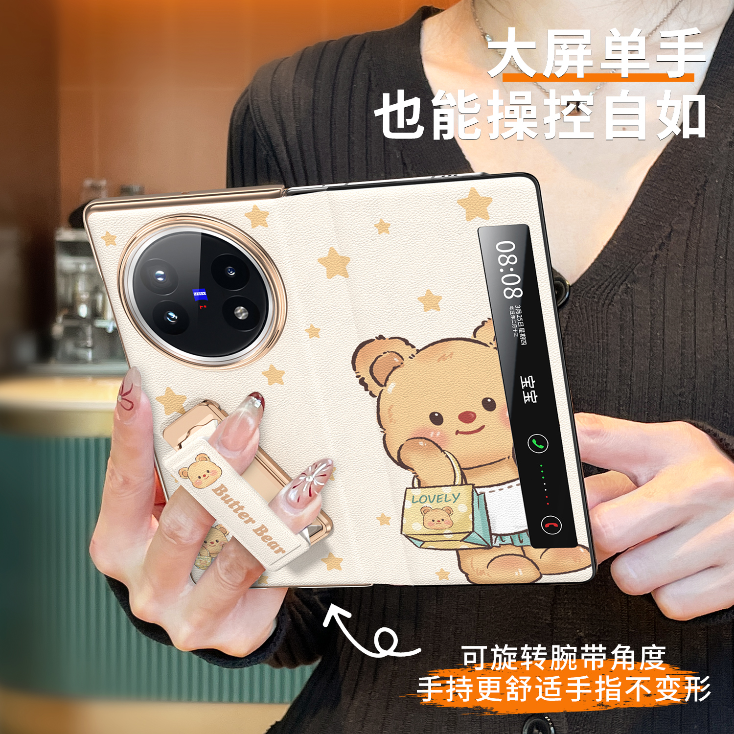 黄油小熊适用vivoxfold5手机壳新款 包邮 旋转支架腕带vivo xfold5磁吸中轴保护套vivo fold5全包外 顺丰