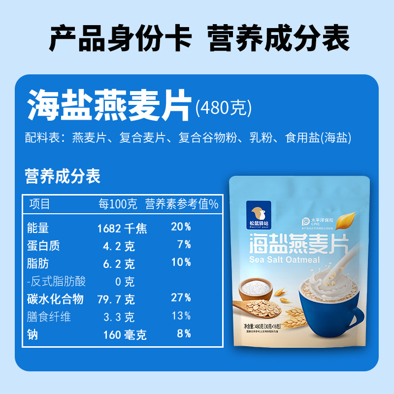 海盐咸味燕麦片营养饱腹早餐冲饮即食无添加蔗糖独立小袋宿舍囤货