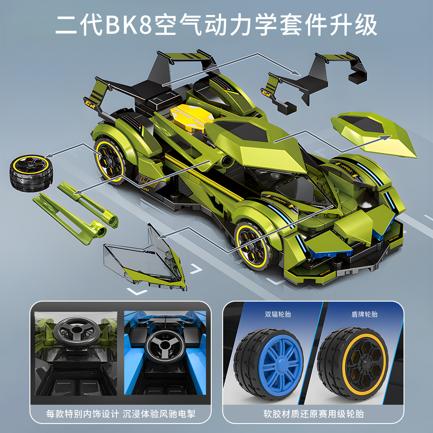 新款 积木6小颗粒森宝积木8模型 积木跑车玩具男童益智思维训练拼装