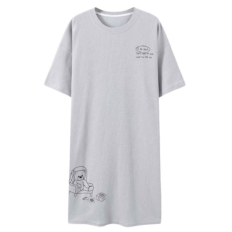 猫人纯棉女士睡裙2025夏新款 连衣裙家居服睡衣 简约卡通宽松中长款