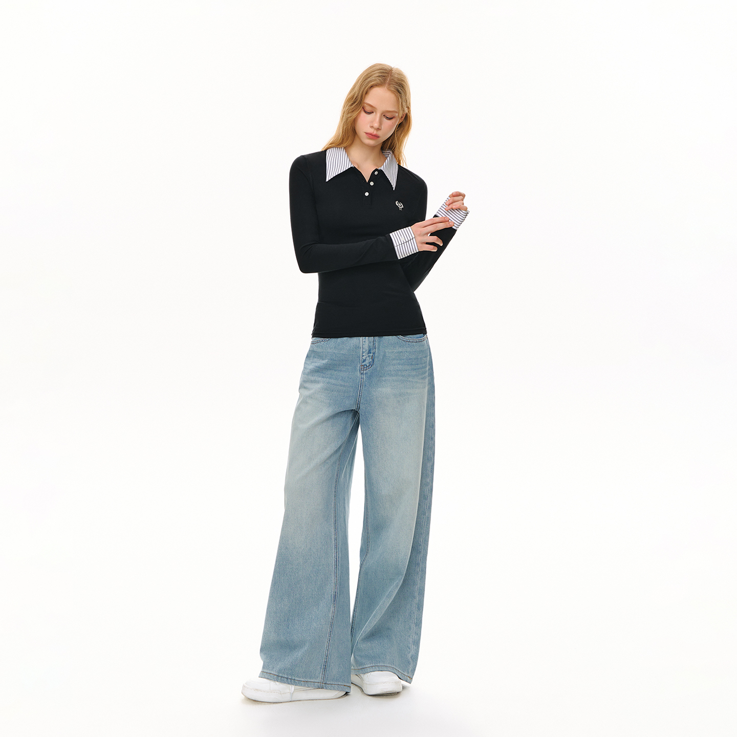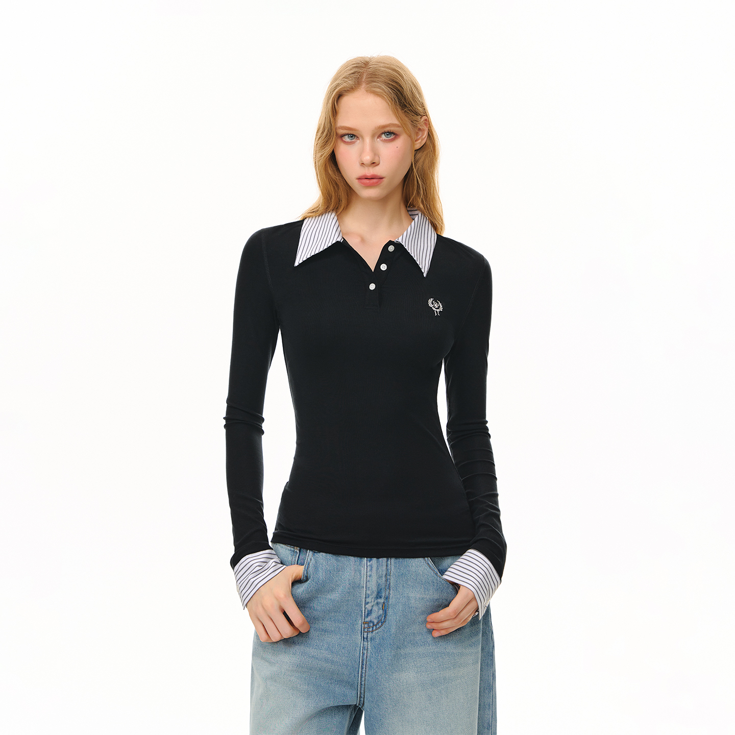 领假两件POLO长袖 衬衫 T恤 VISION知识分子天丝罗纹弹力修身 CLIMAX