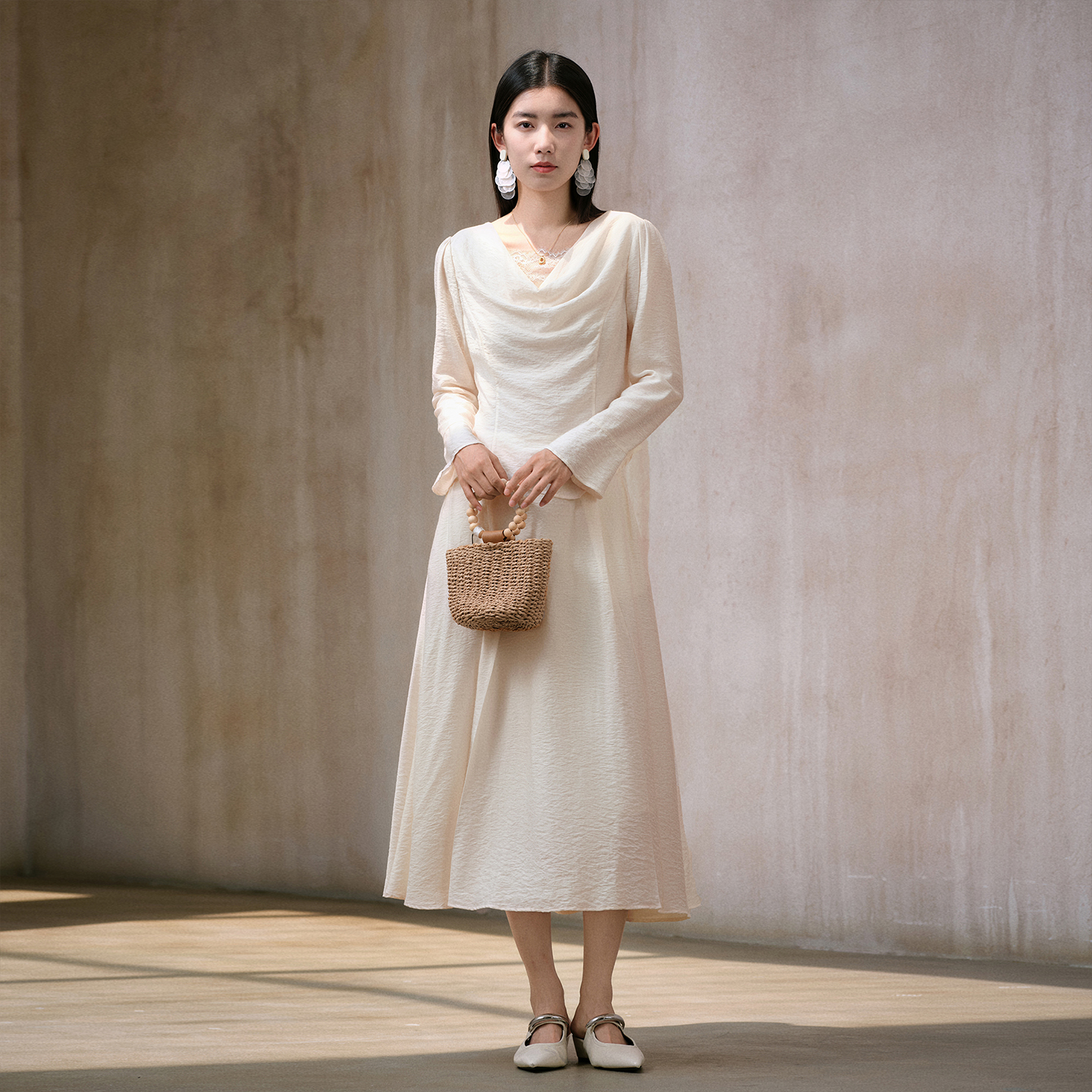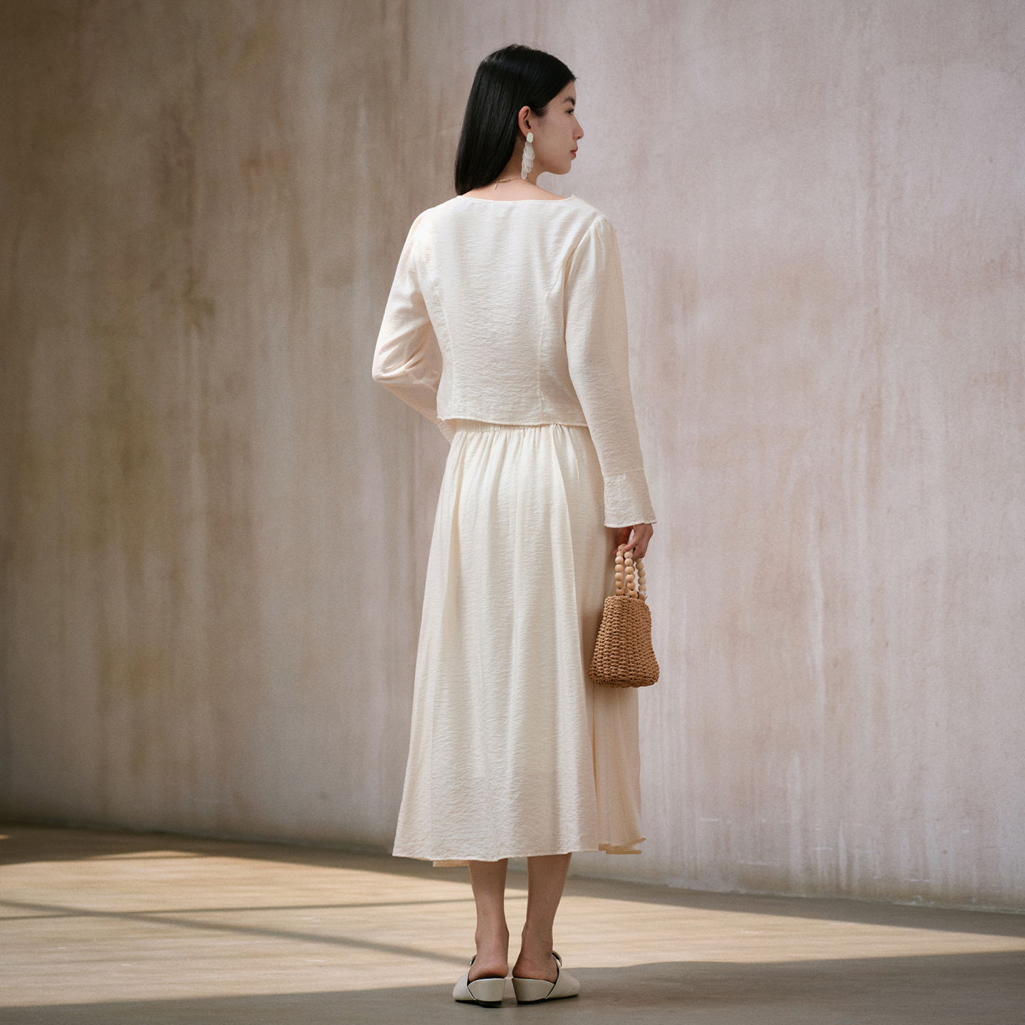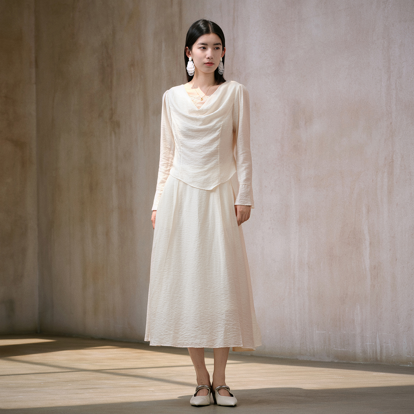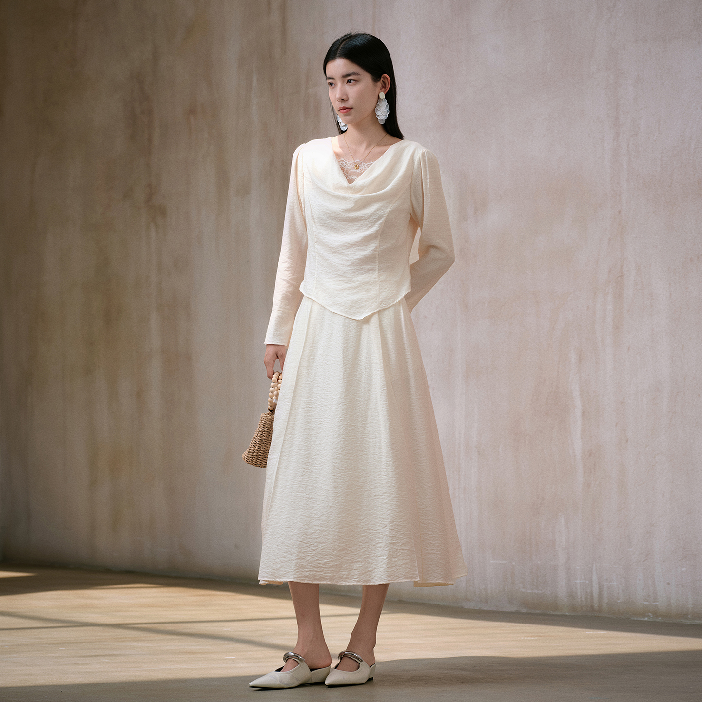 商场同款 新款 阿依莲时尚 女25秋季 两件套荡领上衣半身裙 套装