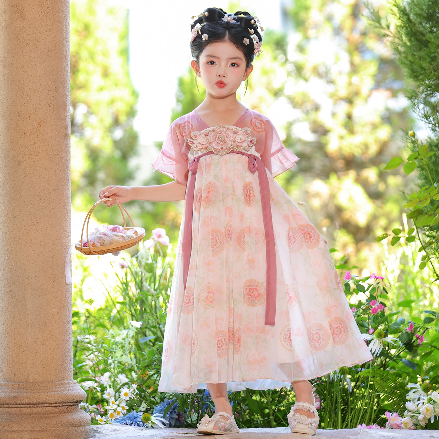 女孩唐装 汉服女童夏款 夏季 2025新款 公主裙 超仙古风连衣裙儿童古装