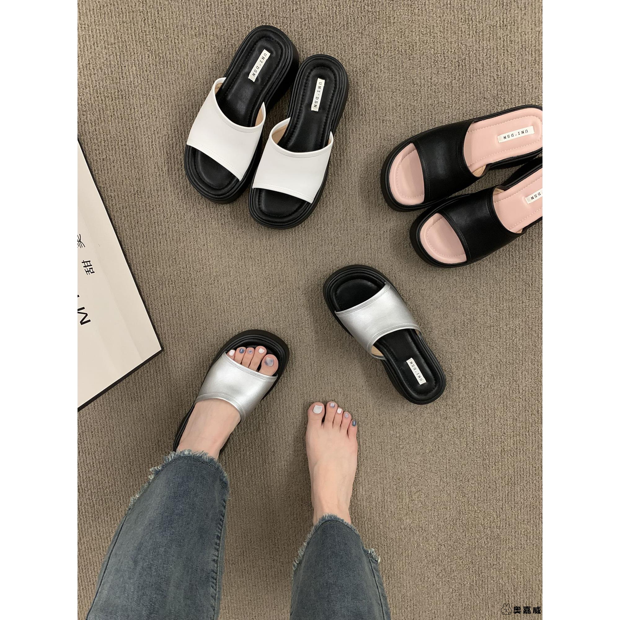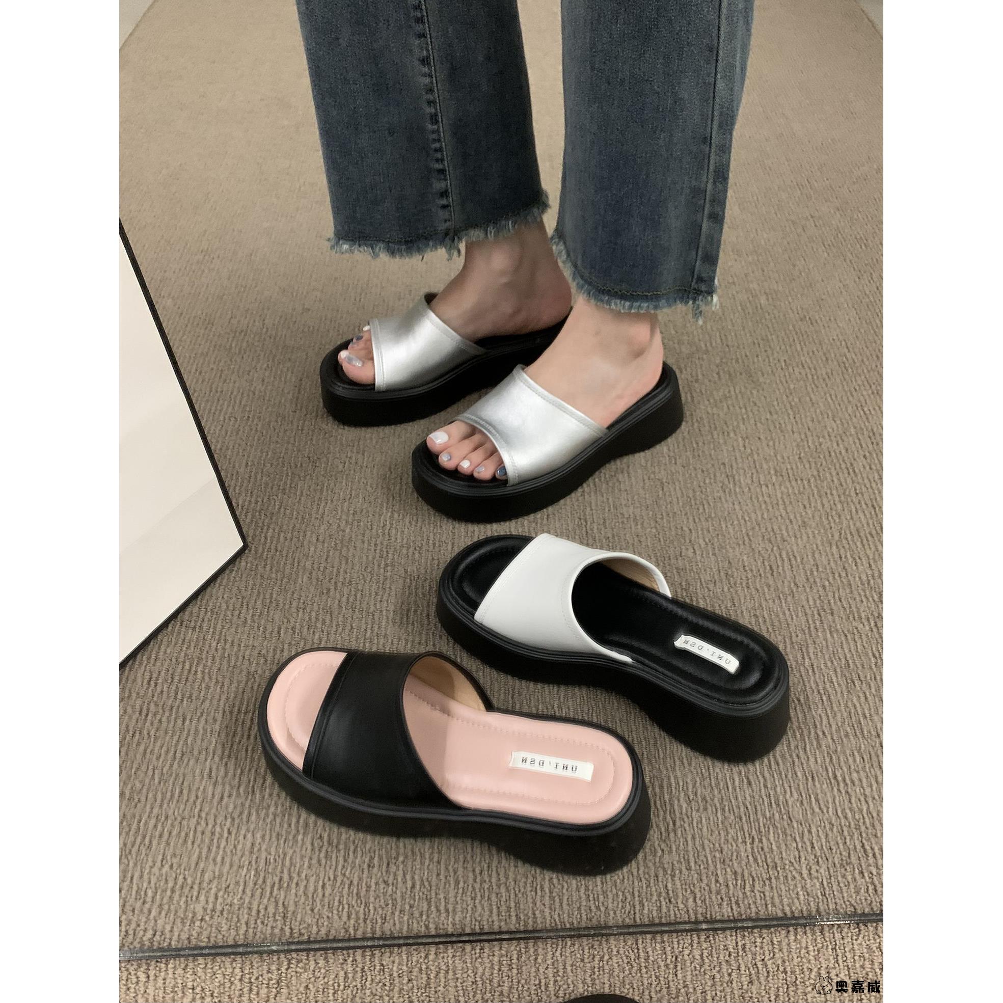 坡跟凉拖度假沙滩罗马凉鞋 网红厚底银色一字拖鞋 女秋外穿2025爆款