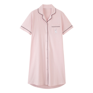 纯棉短袖 开衫 韩版 衬衫 睡衣全棉夏天家居服 中长款 猫人女士睡裙夏季