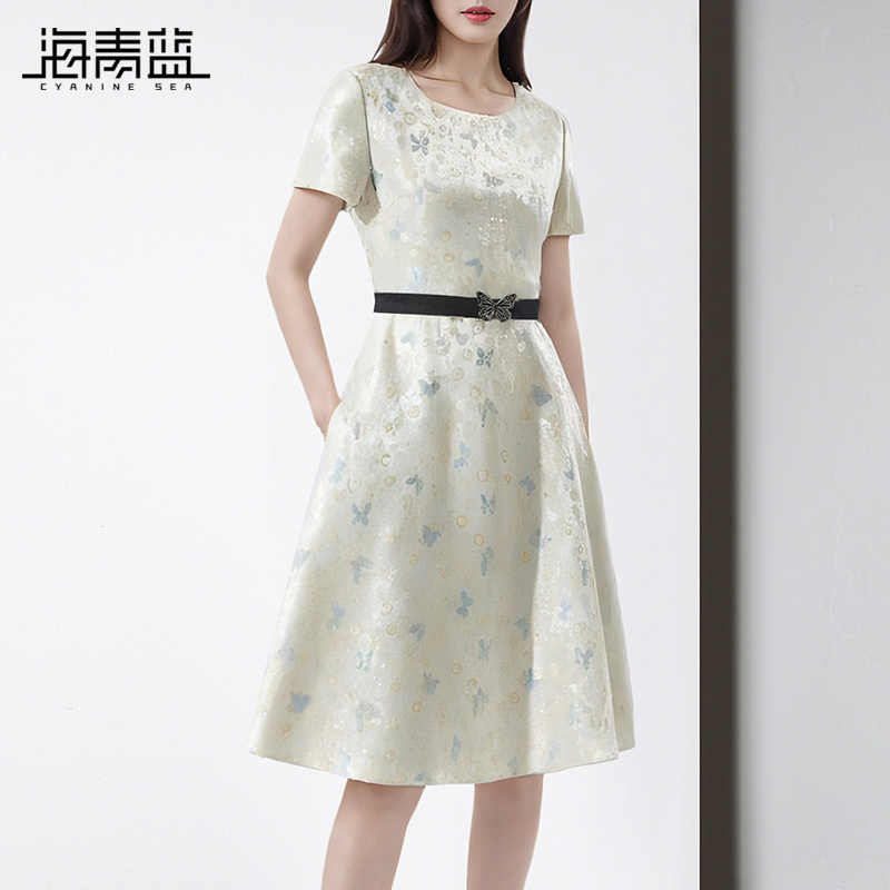 菲梦伊100桑蚕丝印花连衣裙女夏装 复古别致高端真丝阔太太长裙子