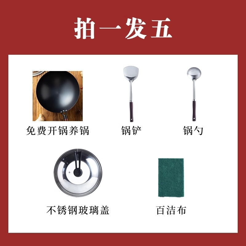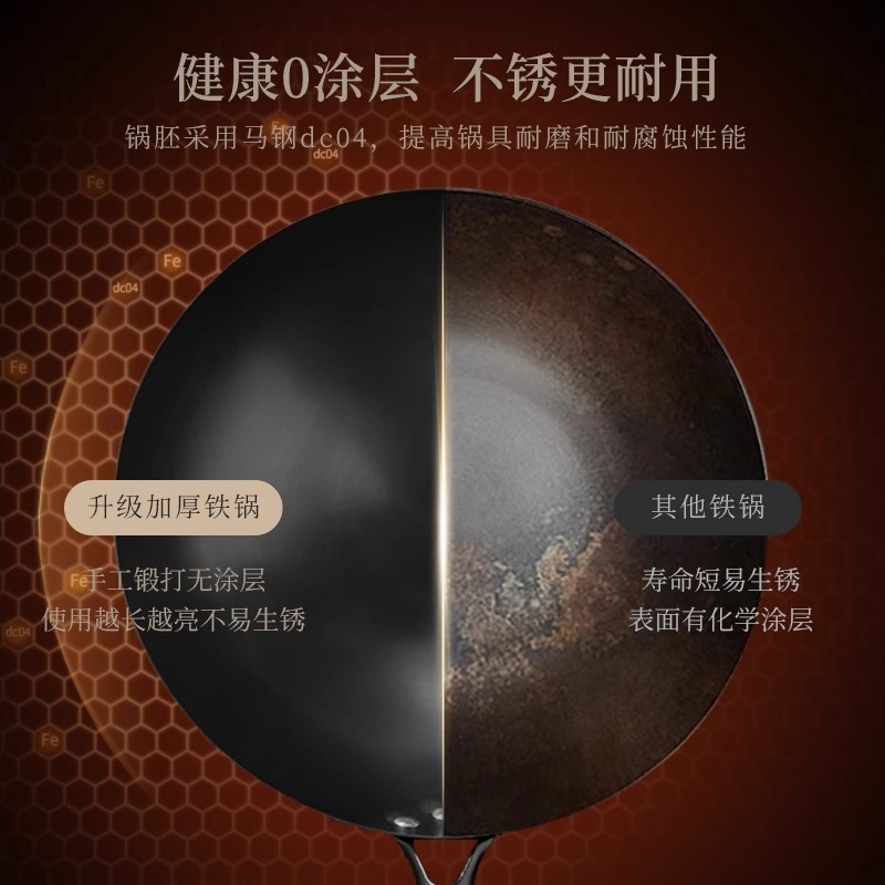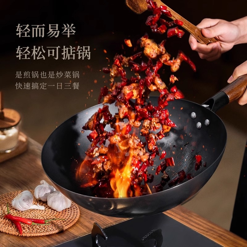正品 铁锅无涂层家用熟铁炒菜锅不粘锅适用燃气灶专用炒锅 传统老式