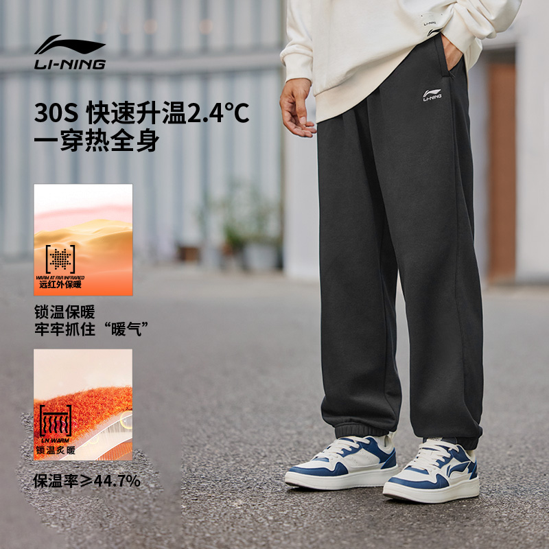 拉链口袋加绒针织黑色运动裤 李宁卫裤 健身跑步长裤 宽松休闲裤 男士