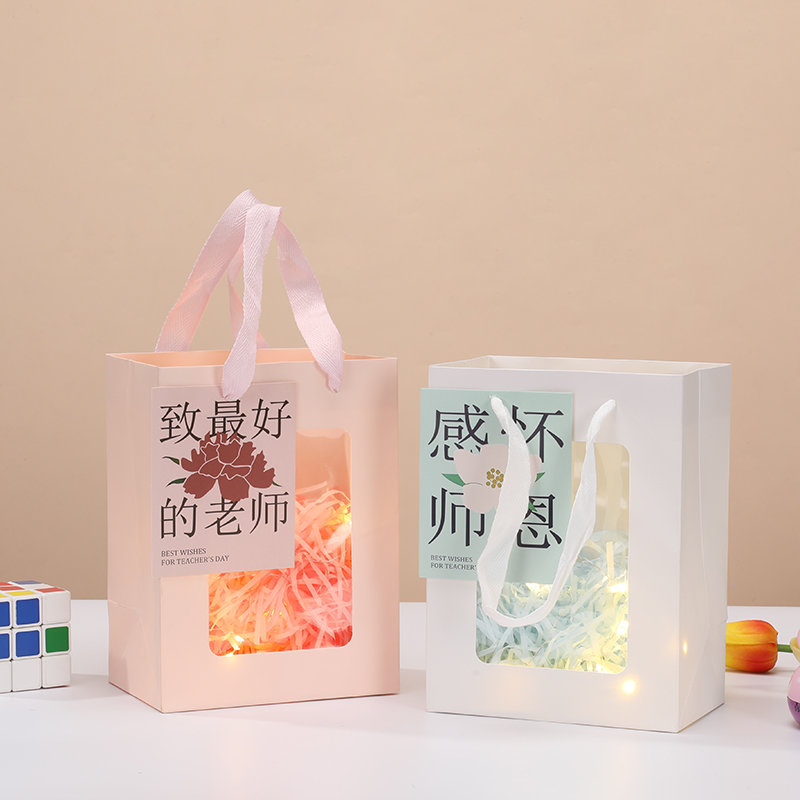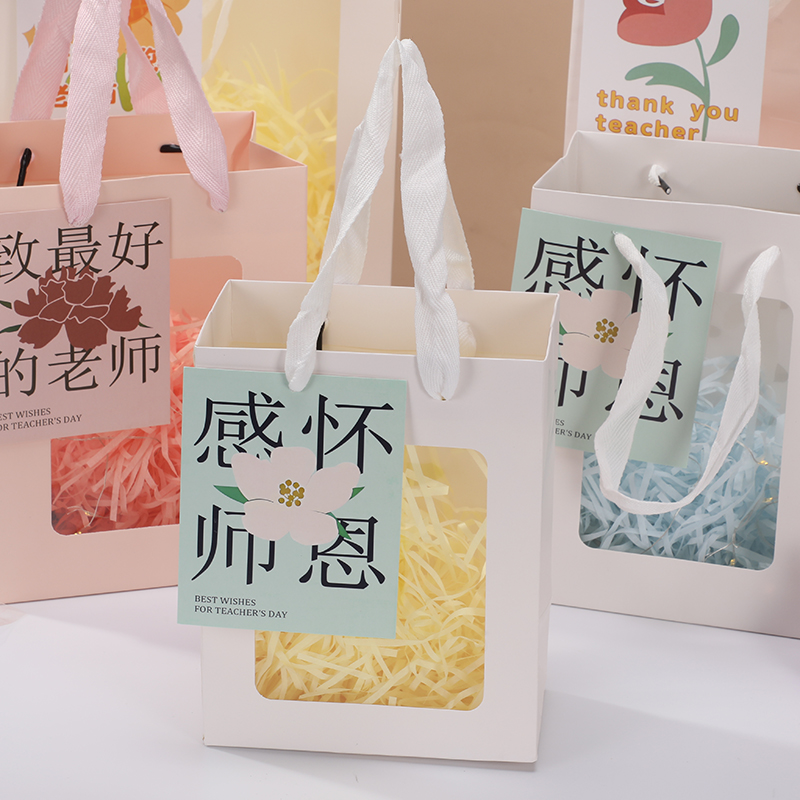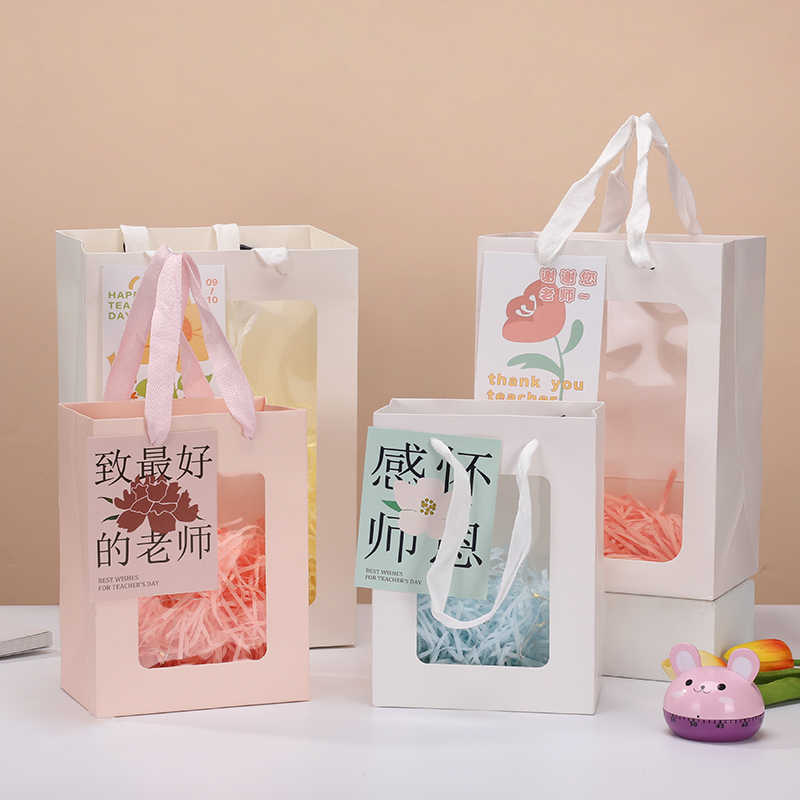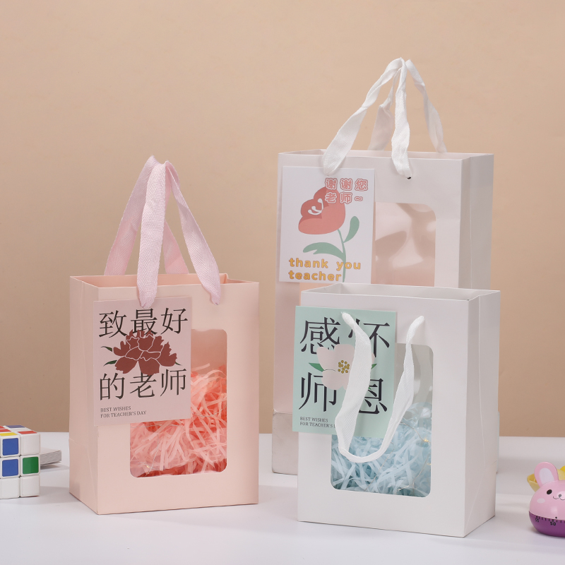 教师节礼品袋手提袋子毕业送老师礼物包装 袋透明开窗礼袋礼盒空盒