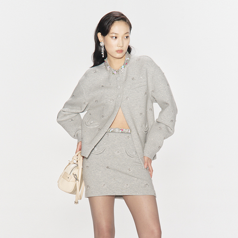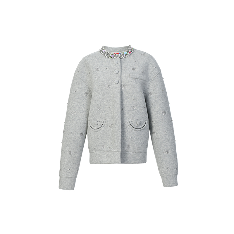 lefame拉飞姆秋季 外套女 miu系格雷系华丽玫瑰花卫衣开衫