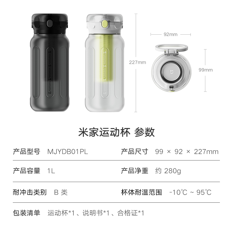 小米运动杯tritan便携水杯大容量学生高颜值手提防摔塑料杯米家