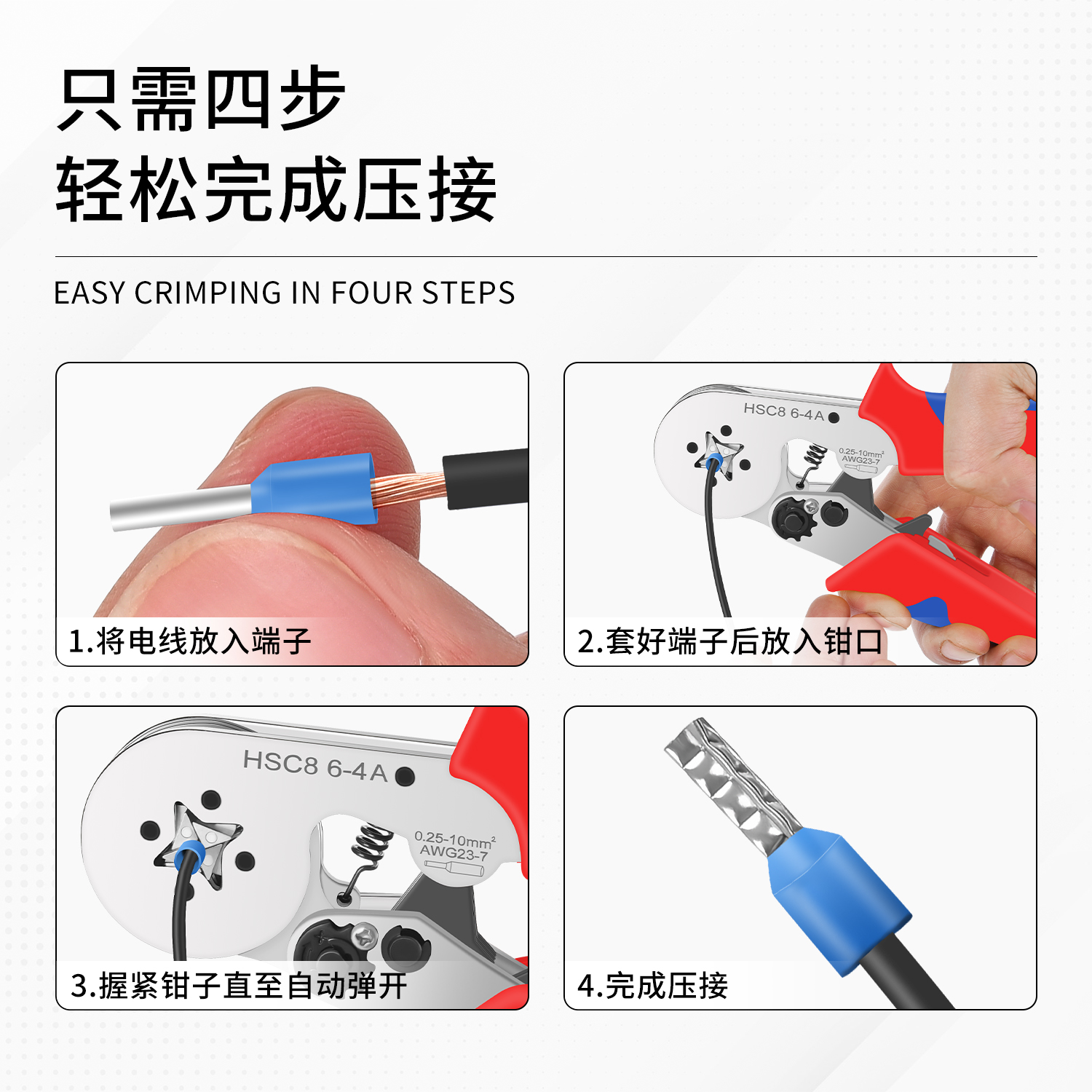冷压端子压线钳电工专用管型针型端子压接钳手动接线夹线工具开口