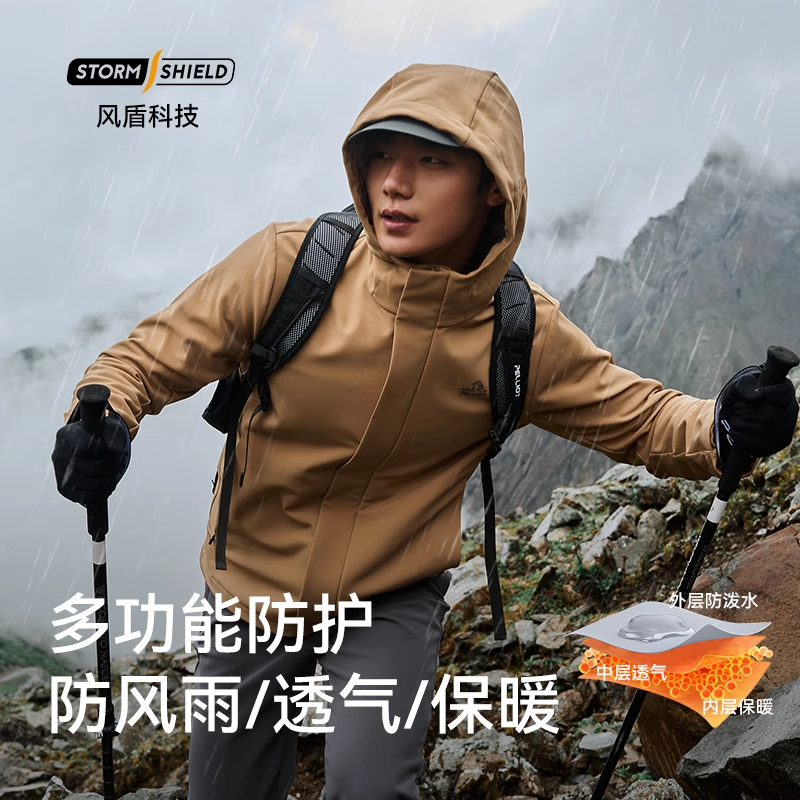 防风防泼水户外加绒连帽登山服 伯希和软壳衣男25新款 双11预售