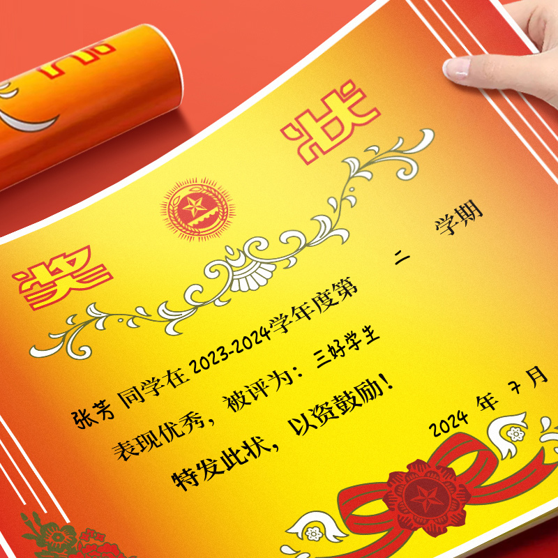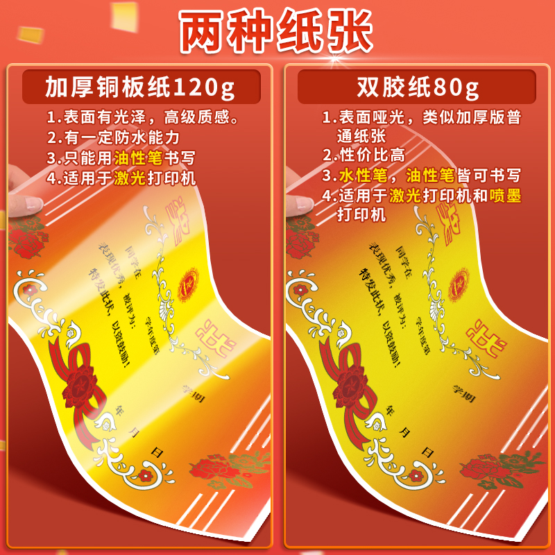 奖状纸学生专用加厚a4荣誉证书无字款 通用内芯初高中生考试鼓励8k荣誉奖状优秀三好学生批发证书 可打印有字款