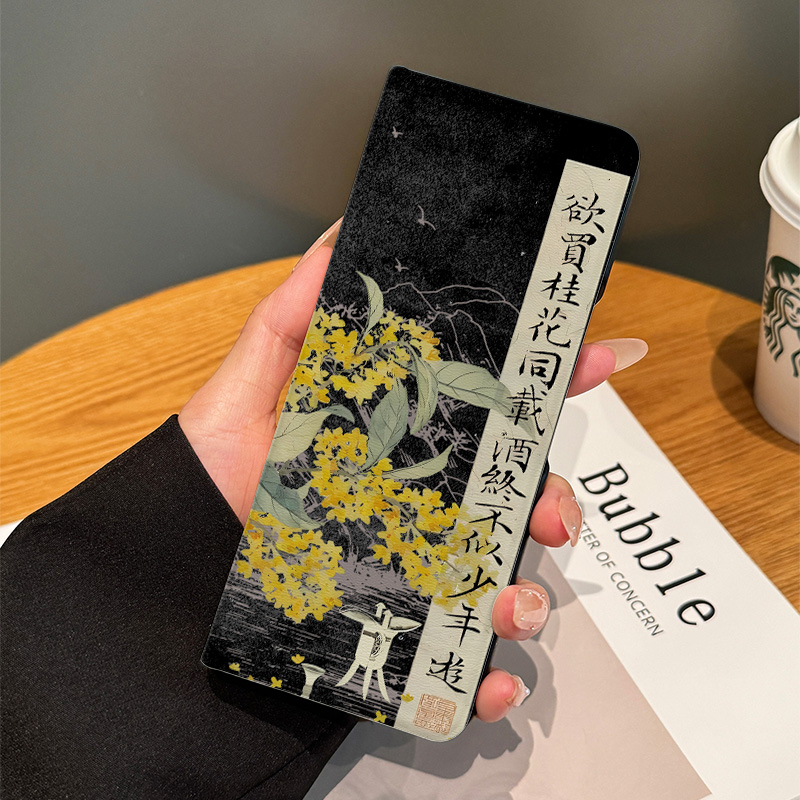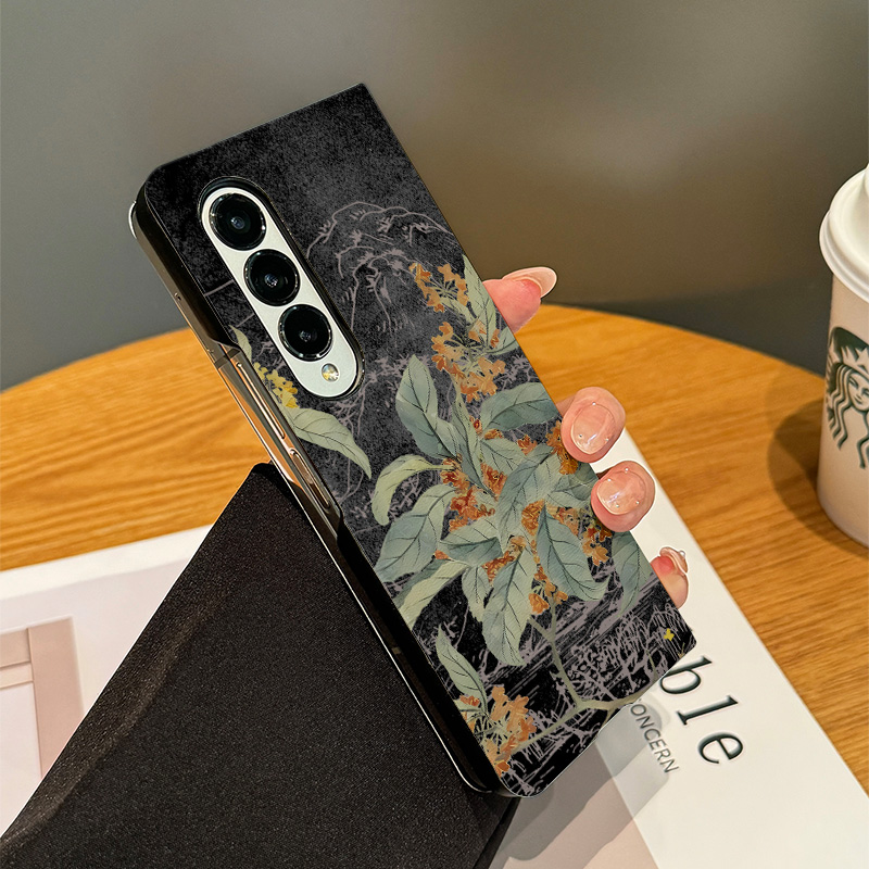 Fold5桂花载酒保护套zfold4折叠屏翻盖防摔国潮zfold3女全包高档 拾壳适用三星zfold6手机壳新款 皮套Galaxy