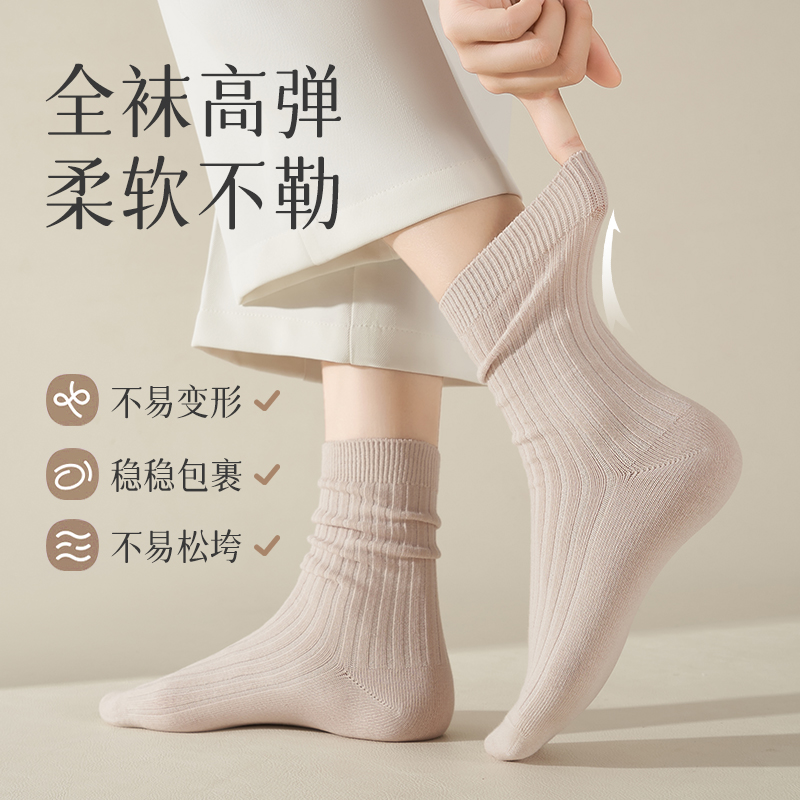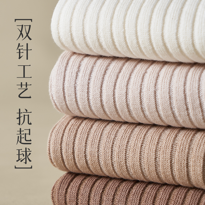 长筒堆堆月子棉袜 薄款 咖色袜子女中筒袜春秋季 双针抗起球纯色夏季
