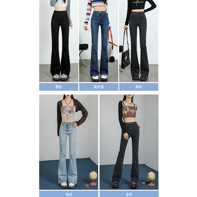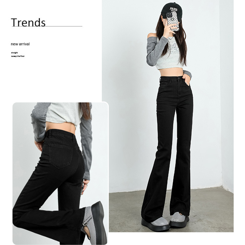 显瘦拖地长裤 微喇叭牛仔裤 高腰弹力修身 黑色时尚 女2025年春秋新款