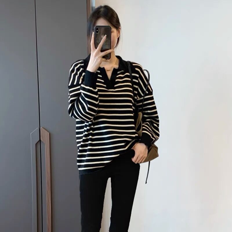 2025新款 时尚 韩版 孕妇装 条纹上衣T恤裤 套装 宽松长袖 子两件套 秋季