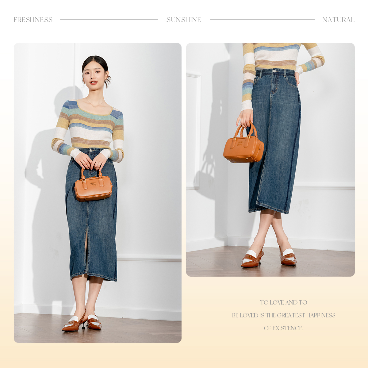 含腰带SWFP254274 高腰小开叉半身裙短裙裤 SNIDEL2025秋冬新品 时尚