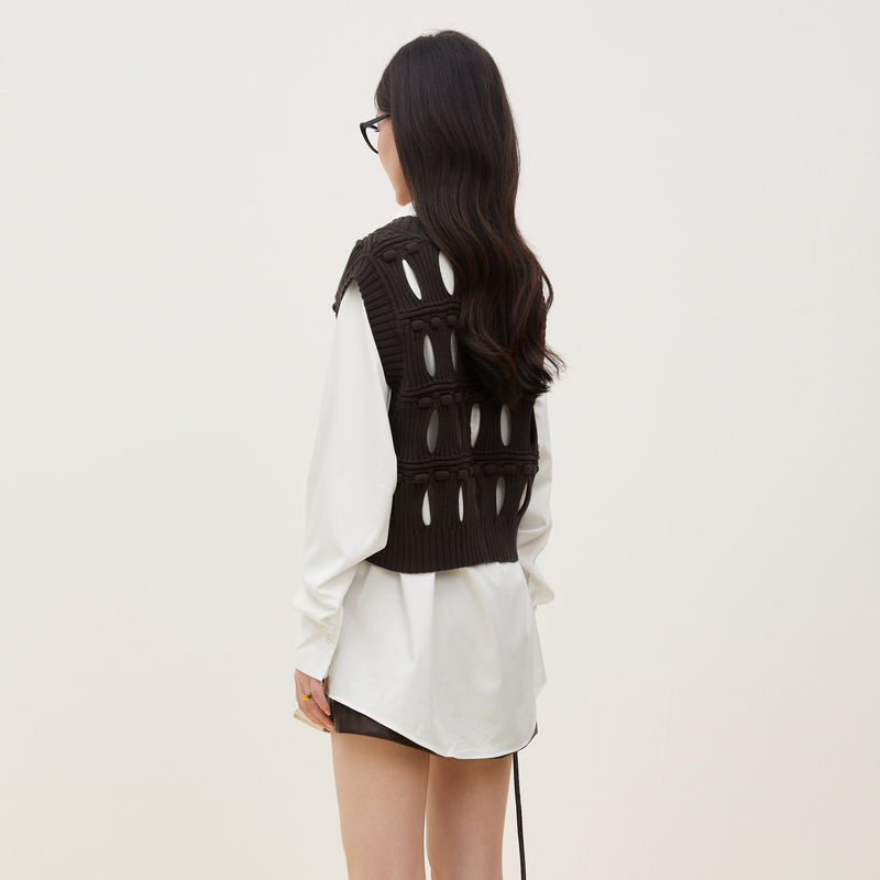 显瘦中领针织衫 半高领无袖 内搭坎肩修身 灰色西装 背心女羊毛打底衫