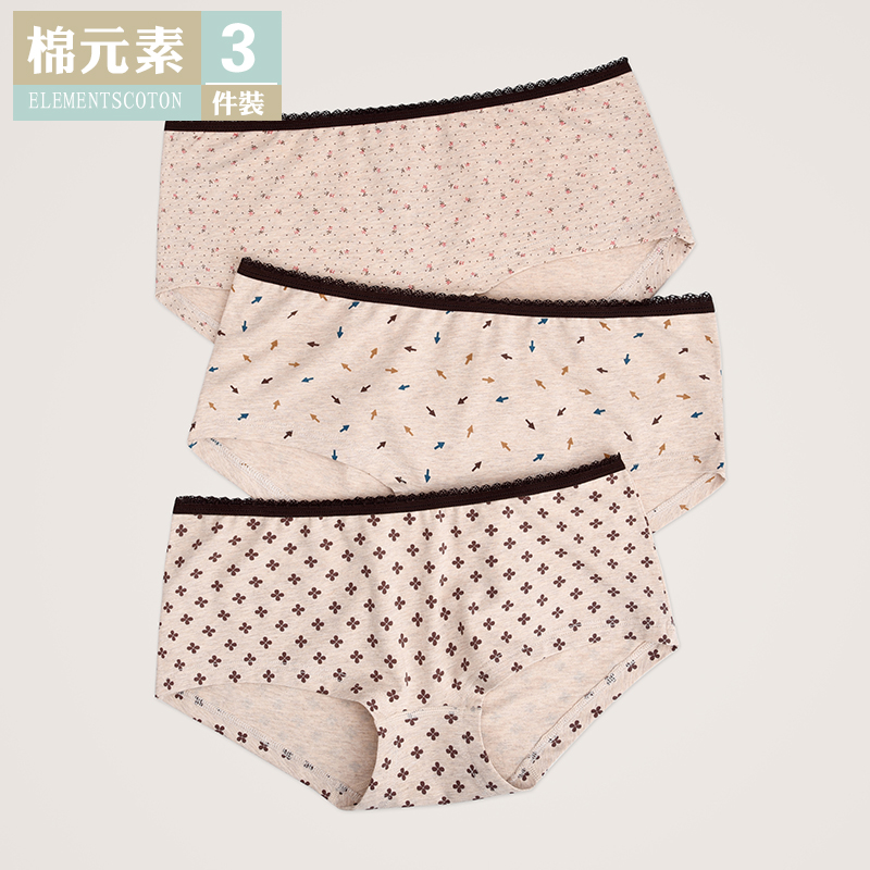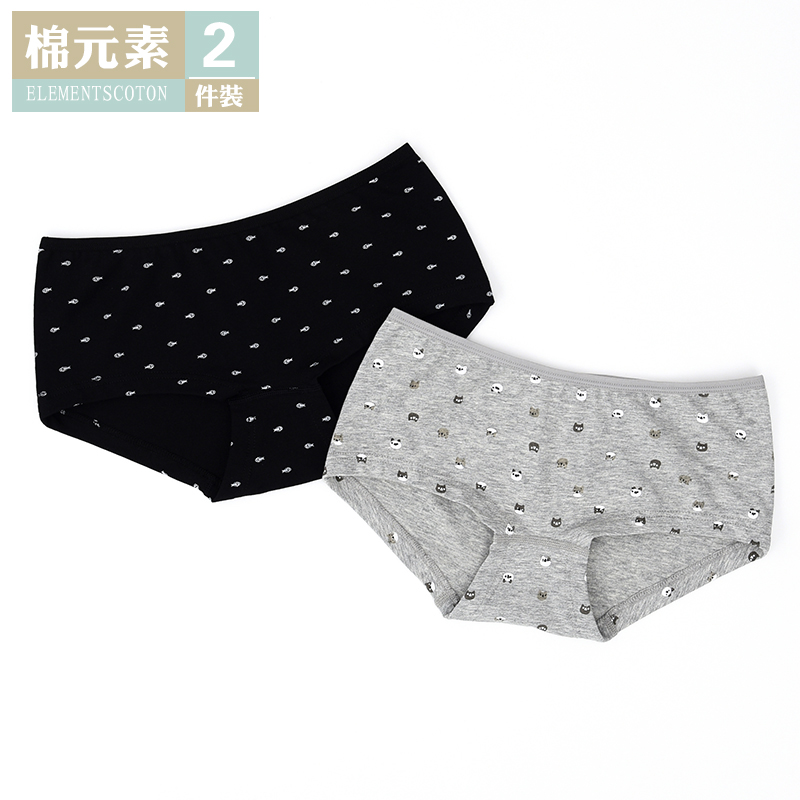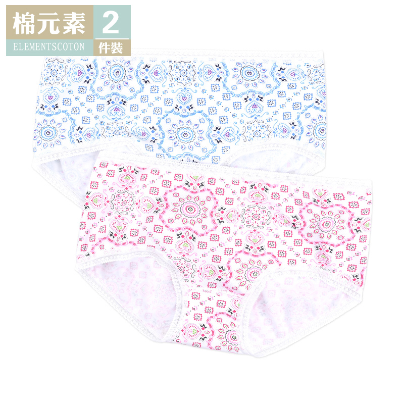 LC系列 弹力棉质舒适学生简约可爱印花少女中腰平角内裤 棉元 素女款