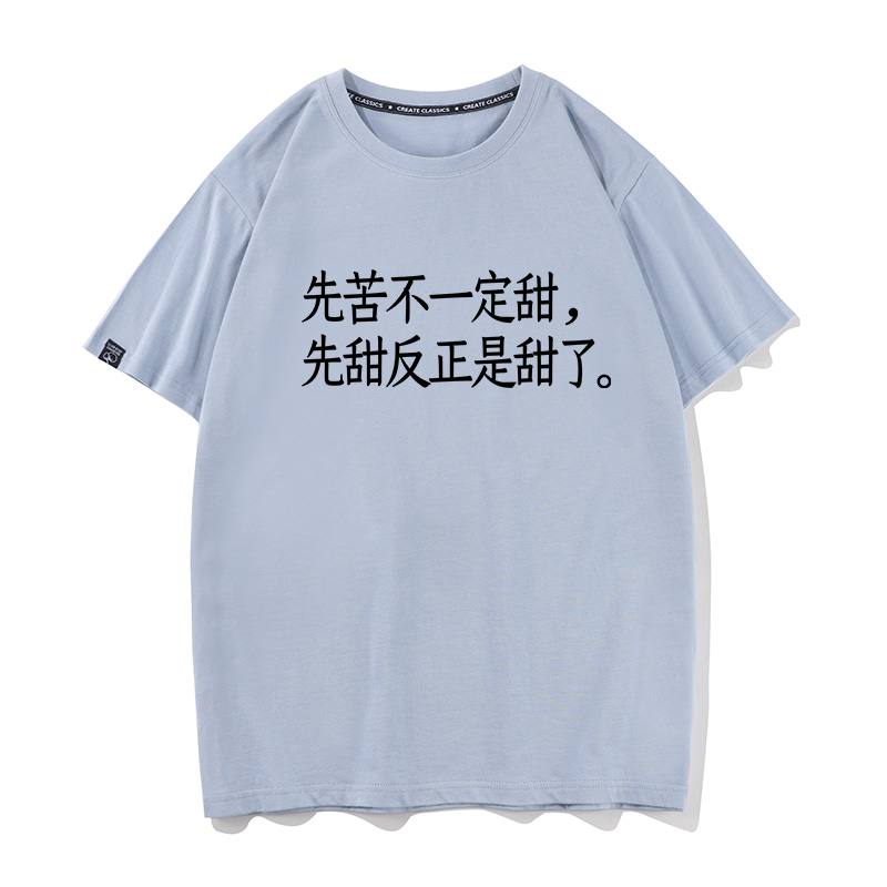 秀洛先苦不一定甜圆领潮流上衣小黑猫纯棉短袖 上衣服 T恤男情侣装