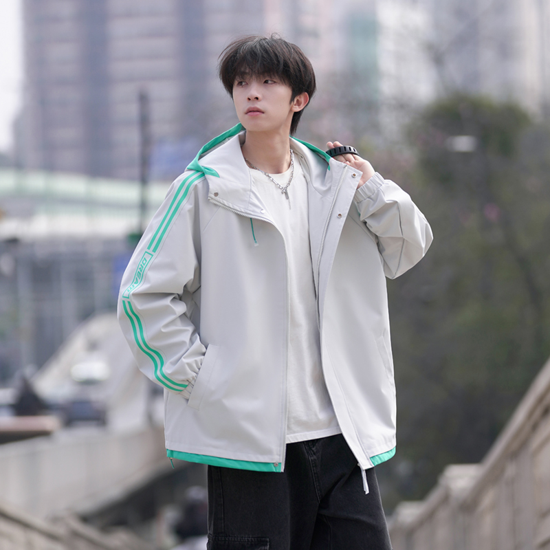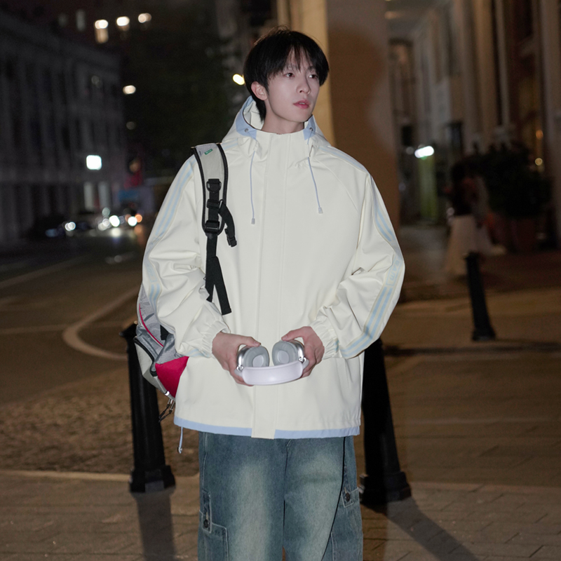 外套男 宽松情侣户外工装 迈特优潮牌条纹冲锋衣女2025新款 美式