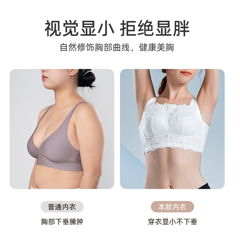 纸片人内衣女大胸显小胸夏季 无痕提拉收副乳防下垂软支撑文胸 薄款