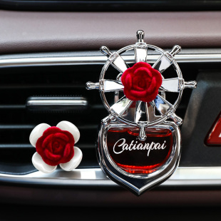 车载香水汽车香薰空调出风口风扇装 饰高档车内摆件持久情人玫瑰花