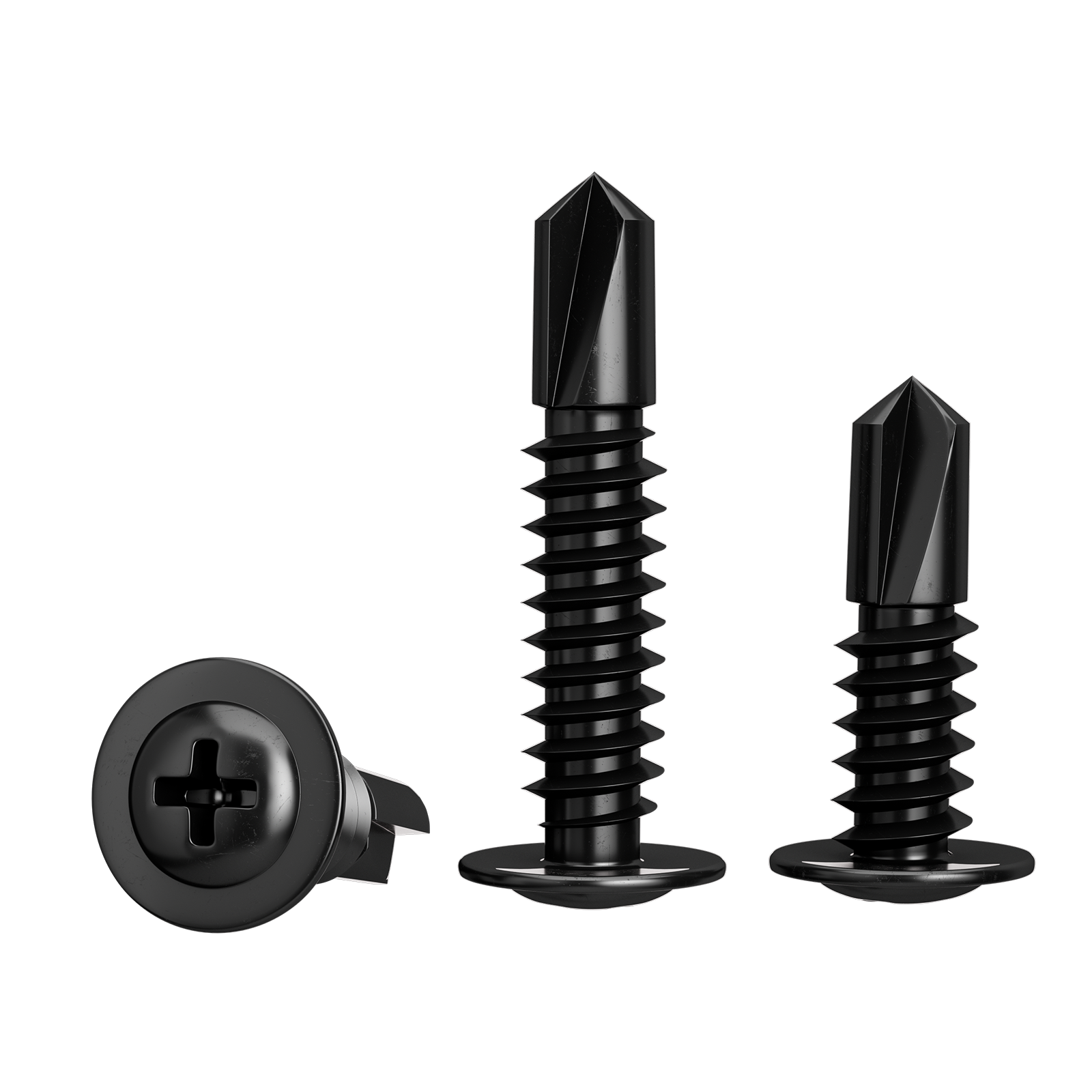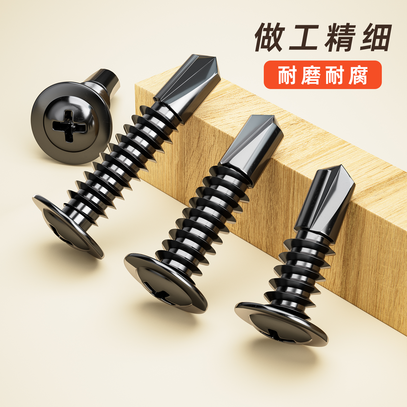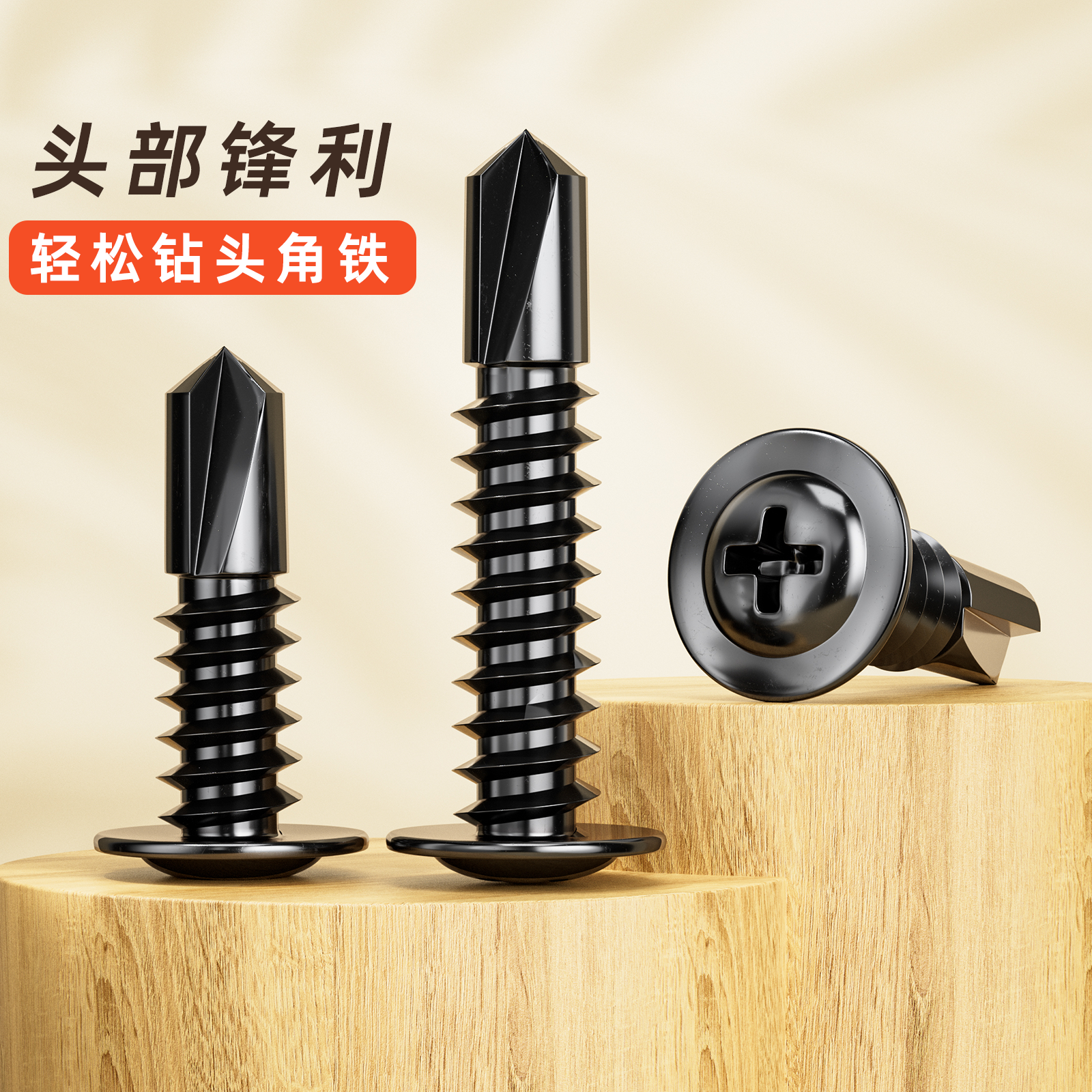 黑色碳钢十字圆头华司大扁头带垫钻尾燕尾自钻螺丝自攻螺钉M4.2