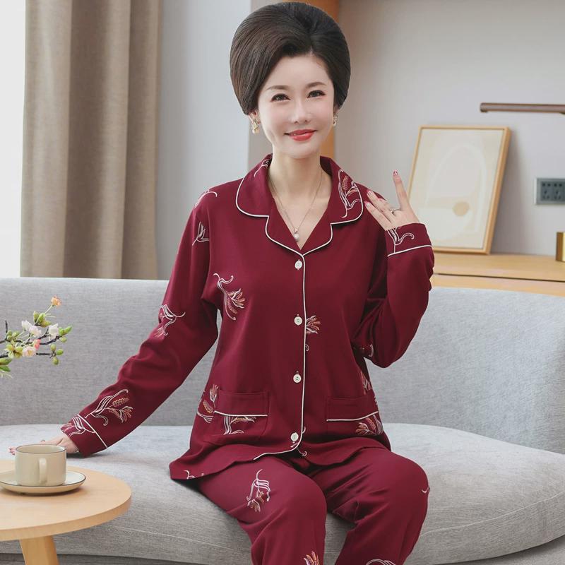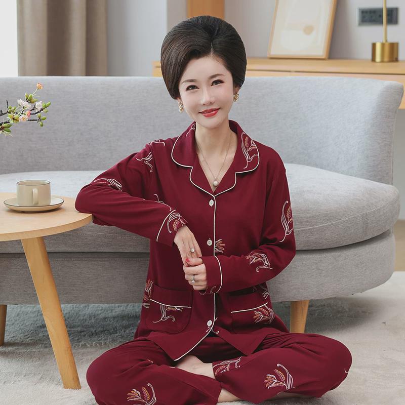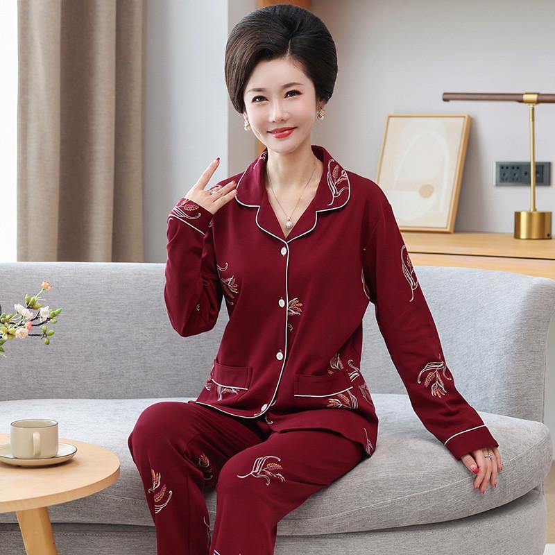 开衫 睡衣女春秋季 套装 中老年长袖 中年妈妈夏冬休闲家居服 纯棉大码