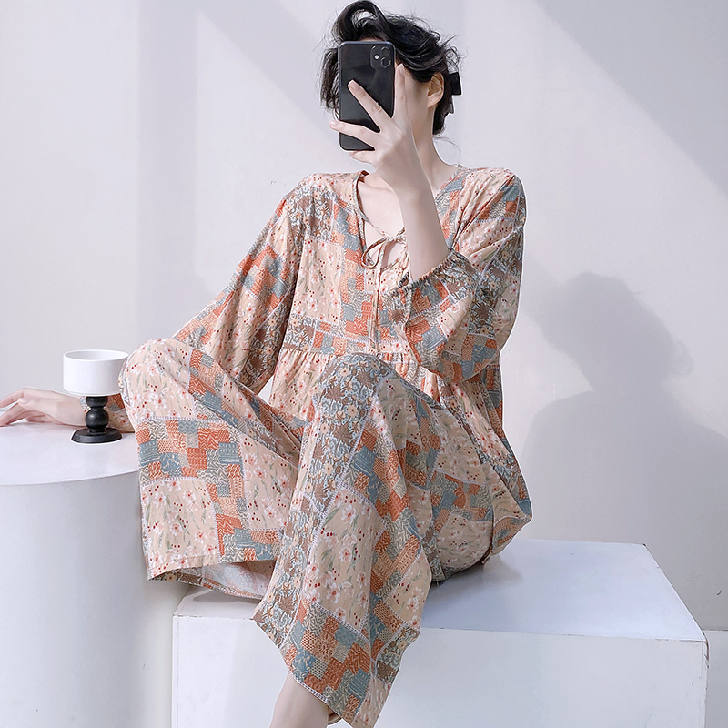 国风可外穿春秋人造绵绸家居服套装 春夏新中式 薄款 棉绸睡衣女长袖