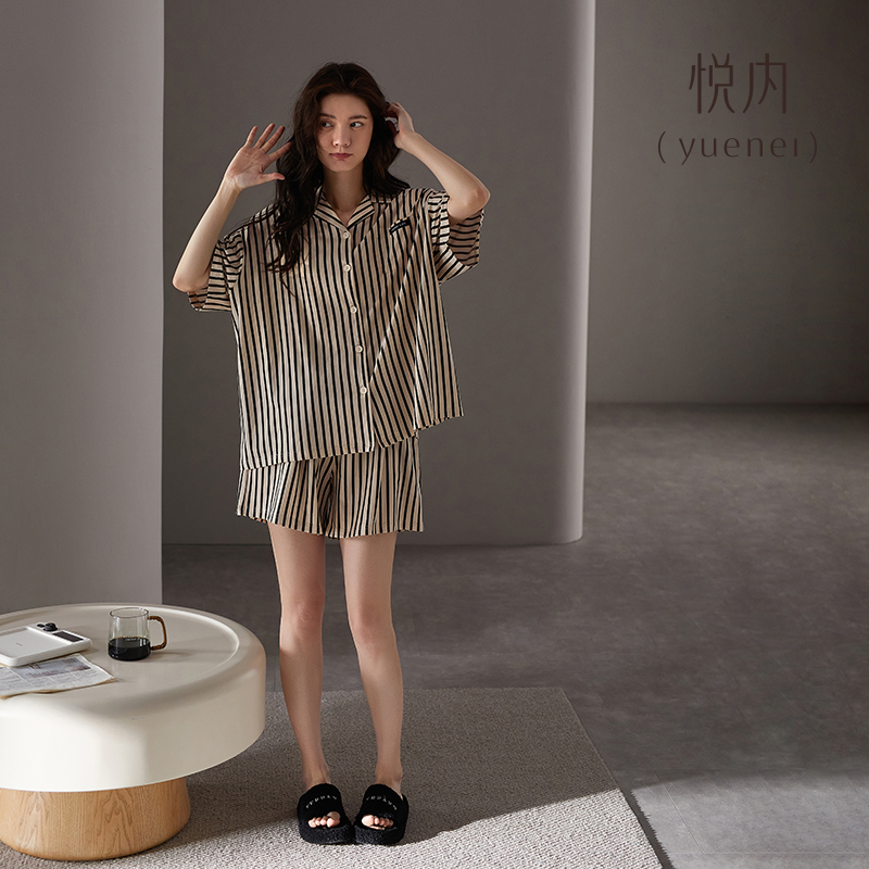 简约女士家居服套装 宽松新款 果壳冰丝睡衣女春秋款 Gukoo