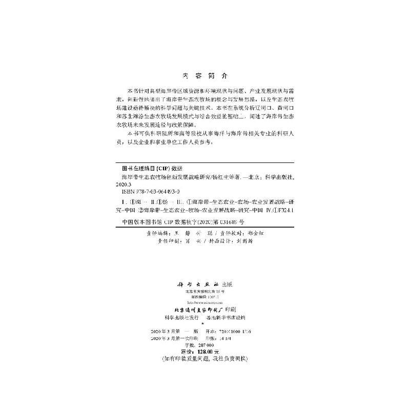 社 科学出版 全新正版 海岸带生态农牧场创新发展战略研究