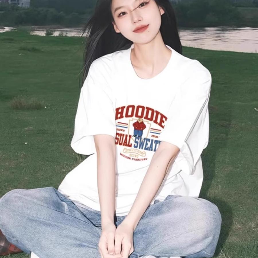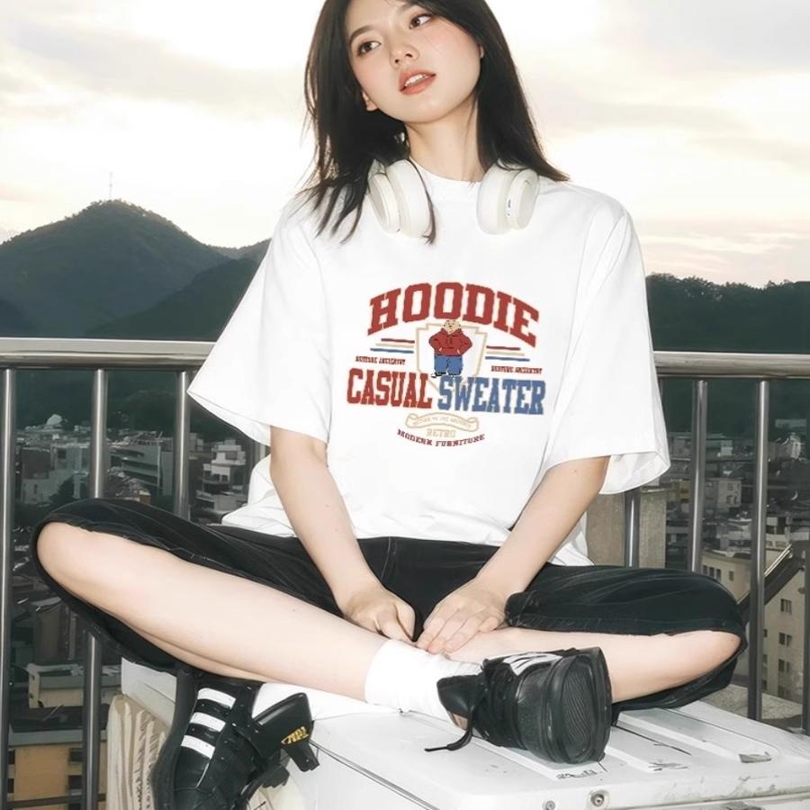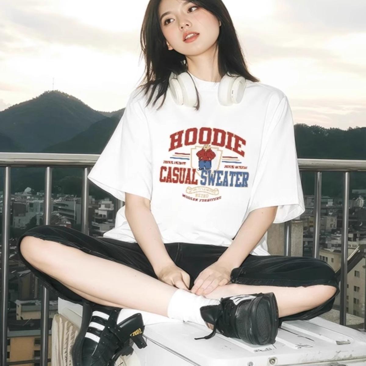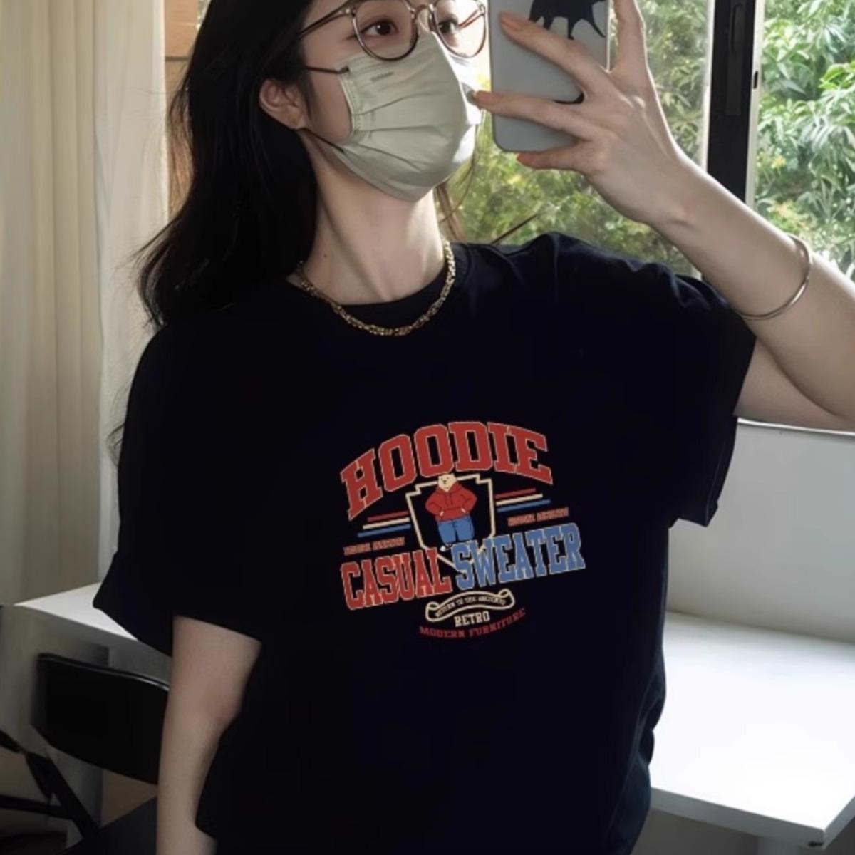 宽松纯棉设计感小衫 夏短袖 女正肩百搭上衣 爆款 高级感2025早春新款