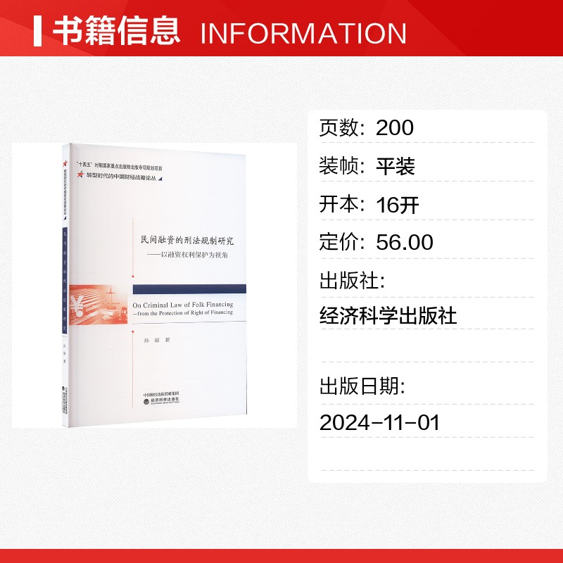著 经济理论经管 经济科学出版 刑法规制研究——以融资权利保护为视角 社 图书籍 孙丽 新华书店正版 民间融资 励志
