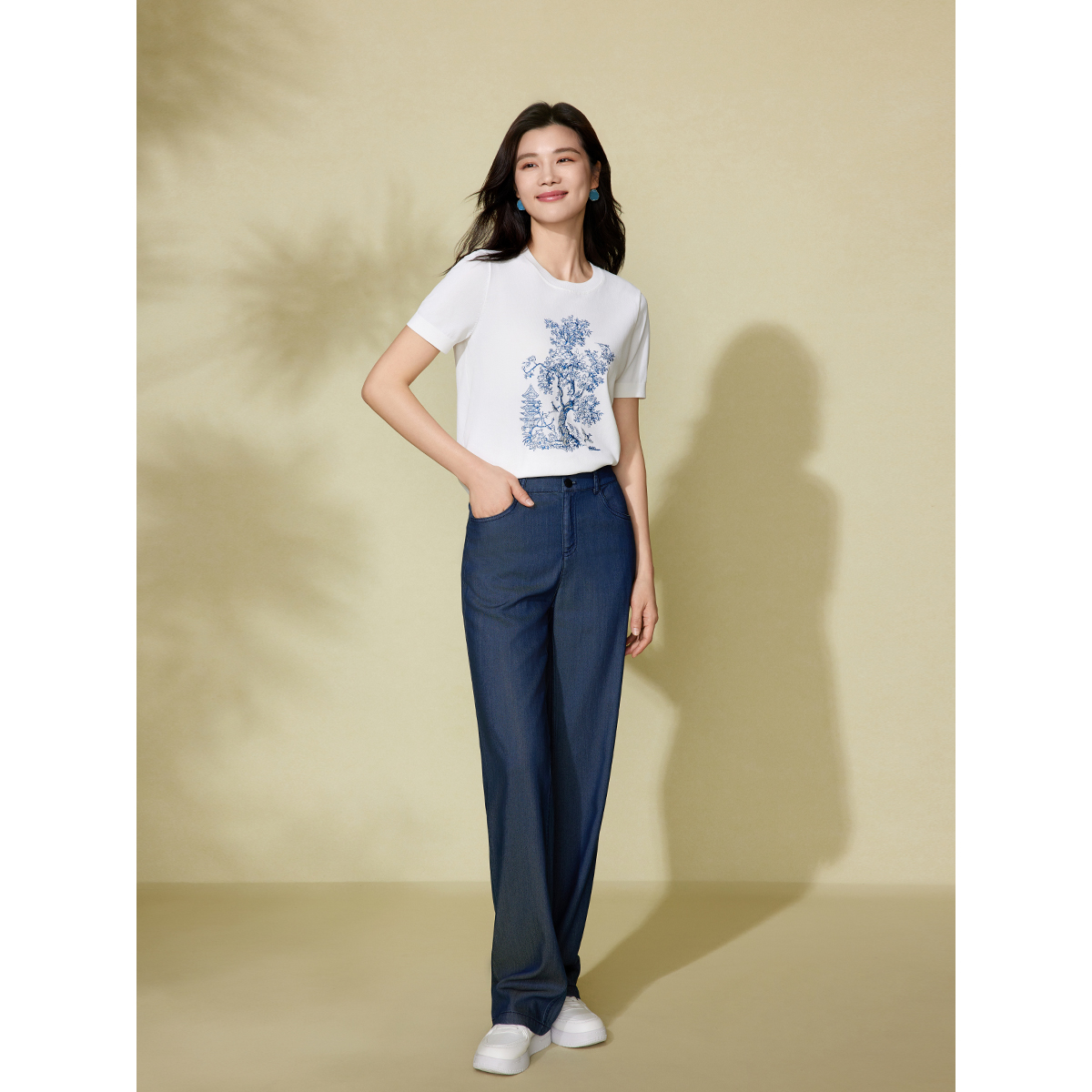 柔软休闲牛仔直筒长裤 粉蓝衣橱2025夏装 BBLLUUEE 女 蓝调序章