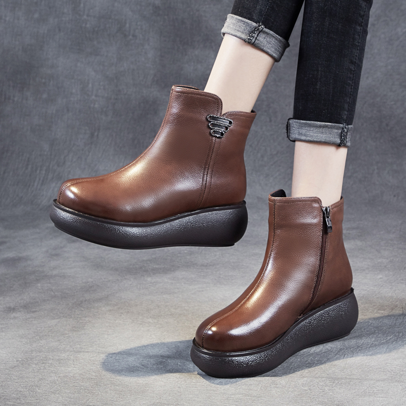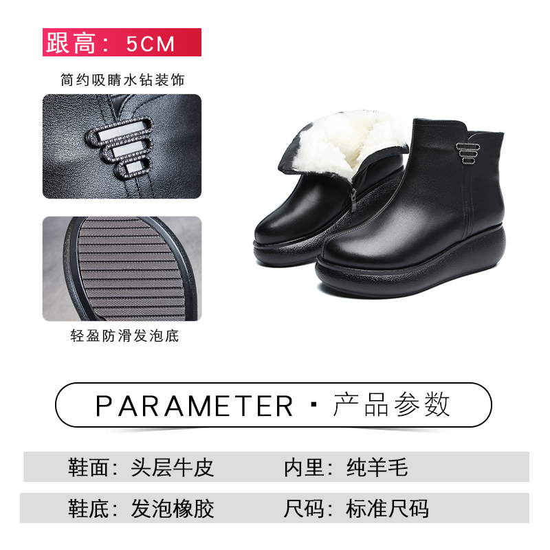 真皮羊毛皮毛一体短靴厚底冬季 雪地靴冬 女靴子加绒加厚妈妈大棉鞋